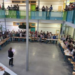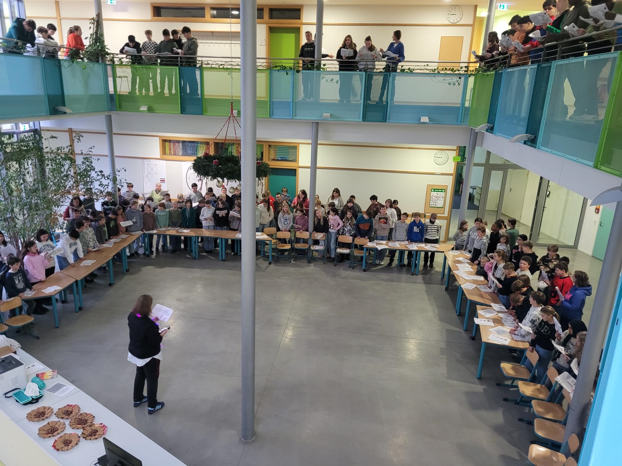 Weihnachtlicher Gesang unter federführender Leitung von Frau Kahlau schallt nun jeden Donnerstag im Advent durch die Schule, wenn die 5.- 7. Klassen gemeinsam Weihnachtslieder singen.