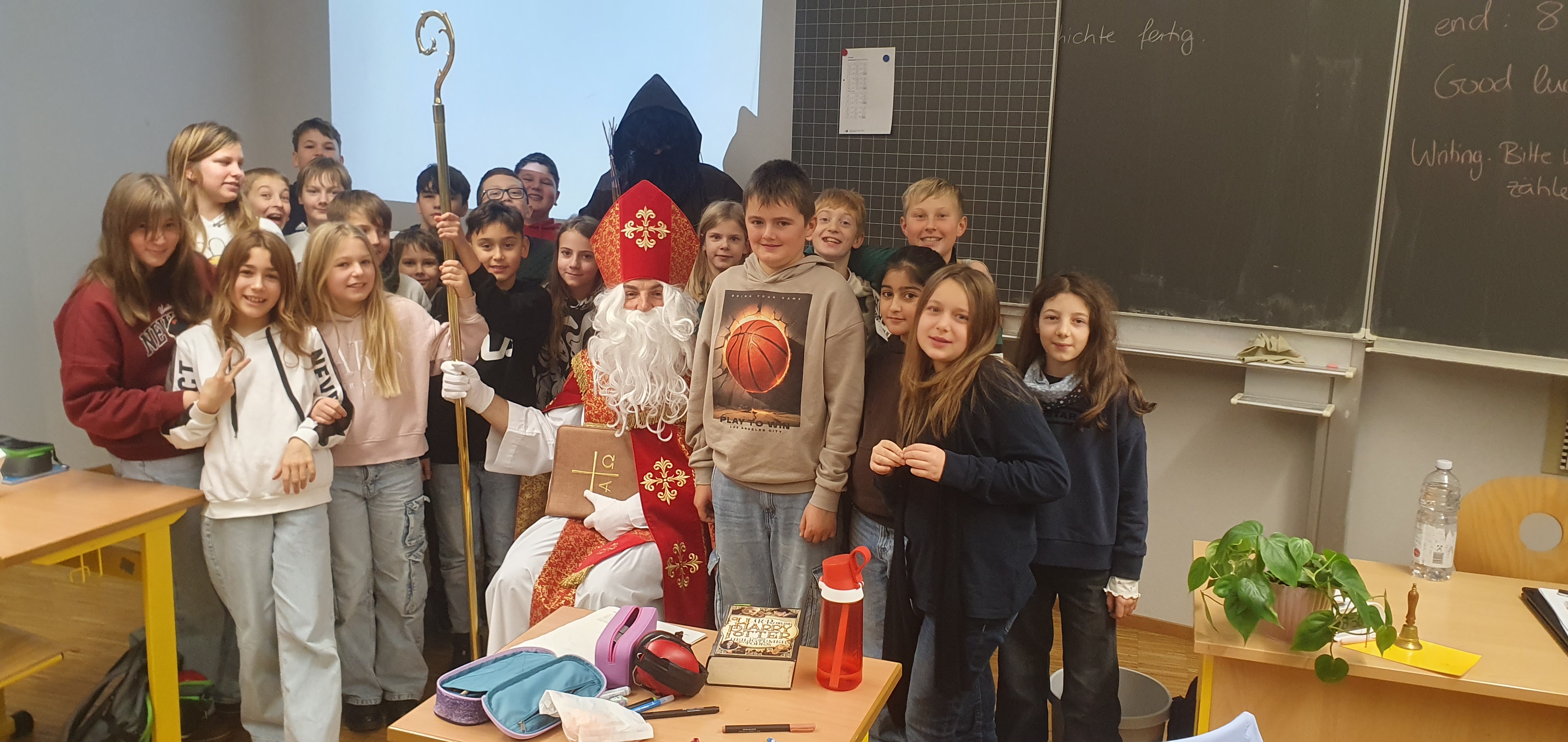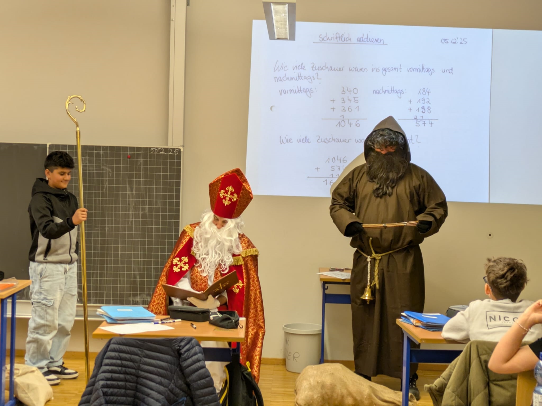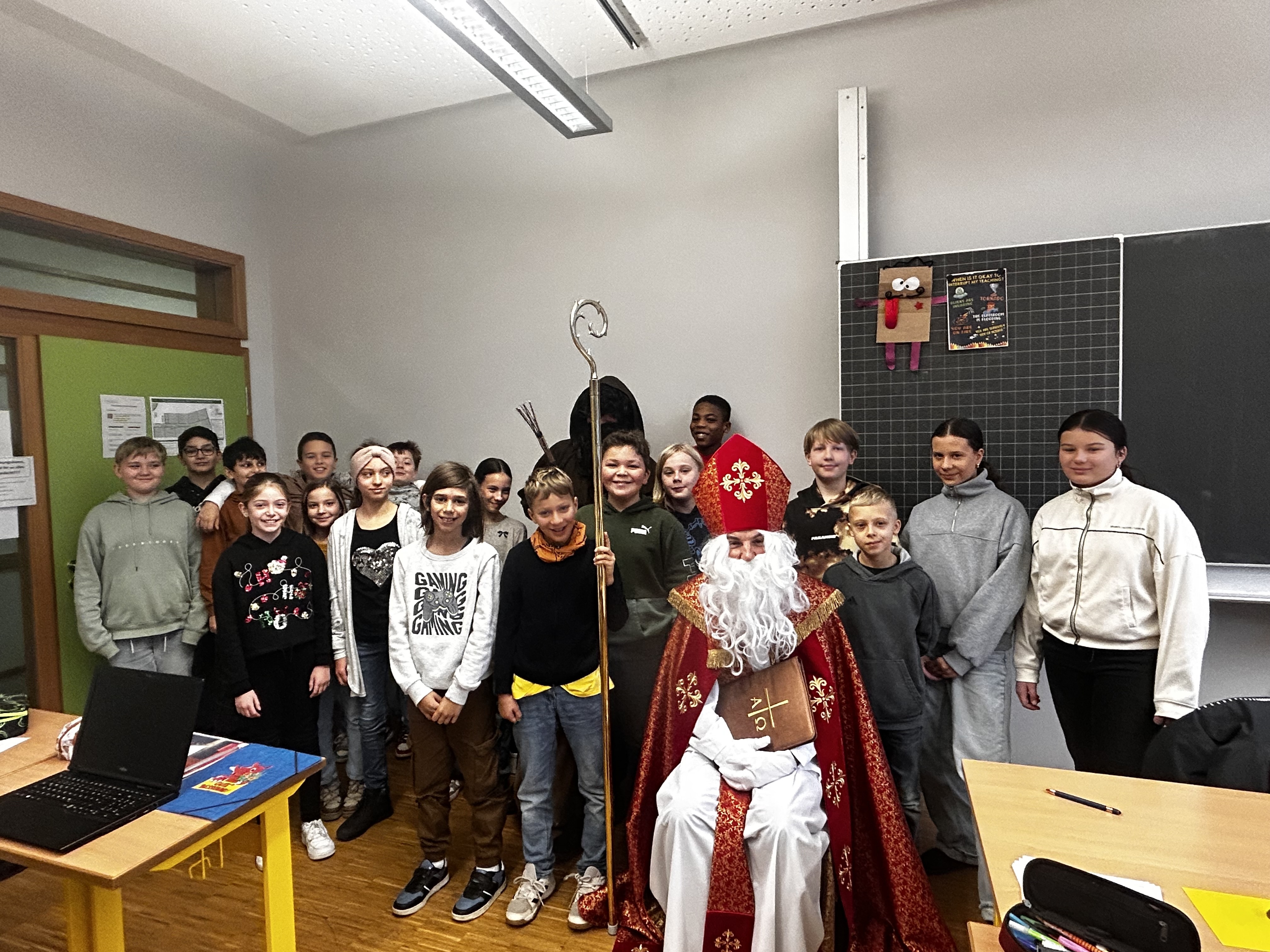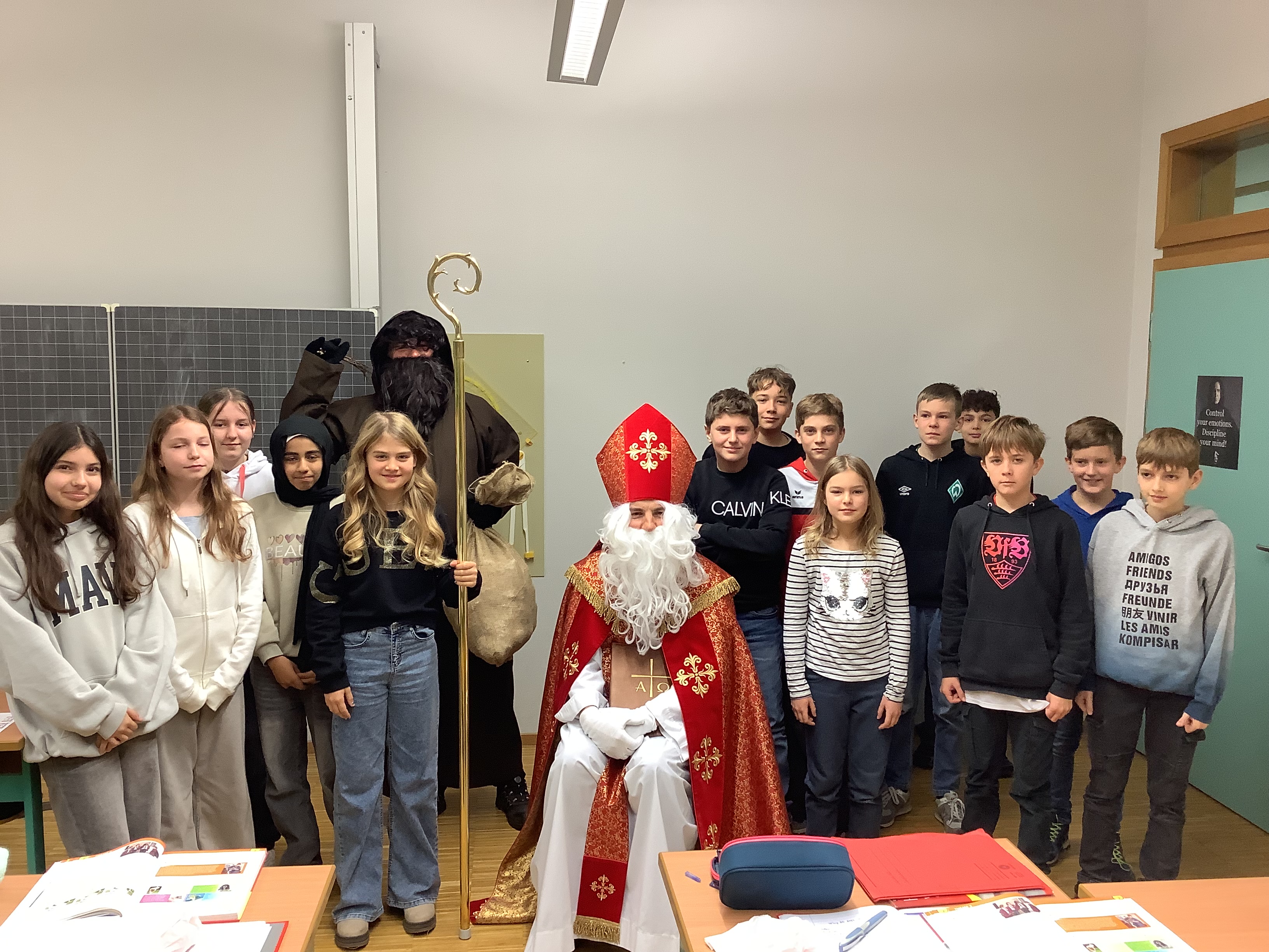 Am Freitag, den 05.12.2025 kam plötzlich Unruhe in der Schülerschaft auf. Der Nikolaus mit seinem Knecht Ruprecht besuchte die Klassen 5 und 6 und die Vorbereitungsklasse.