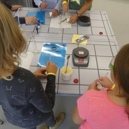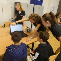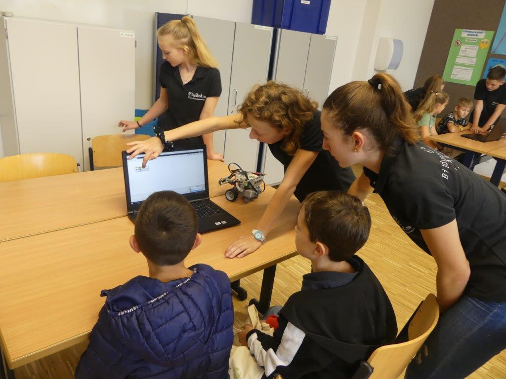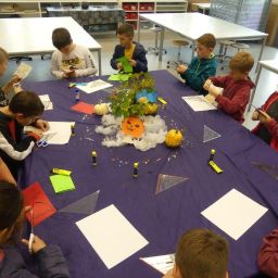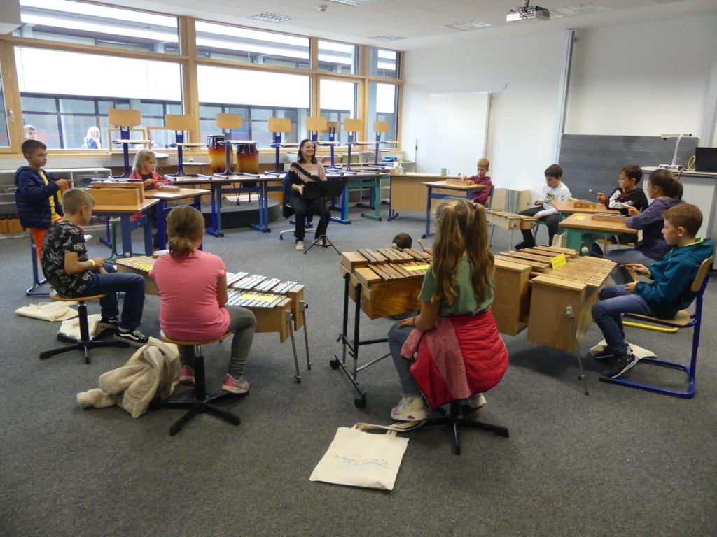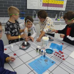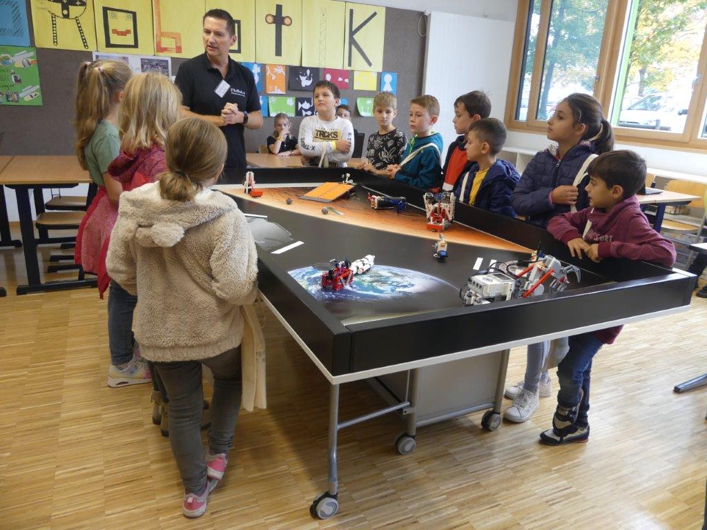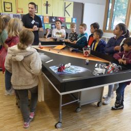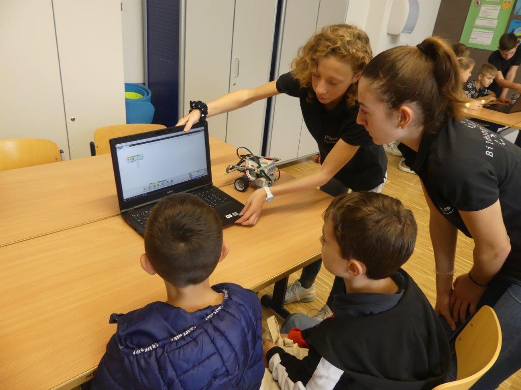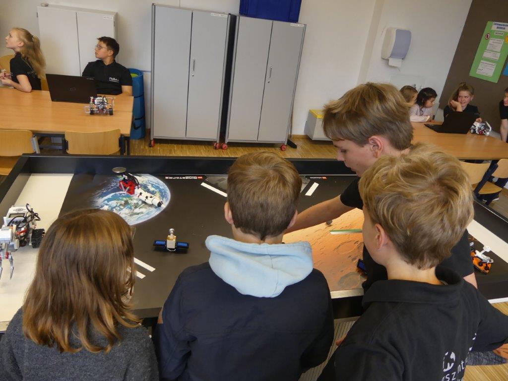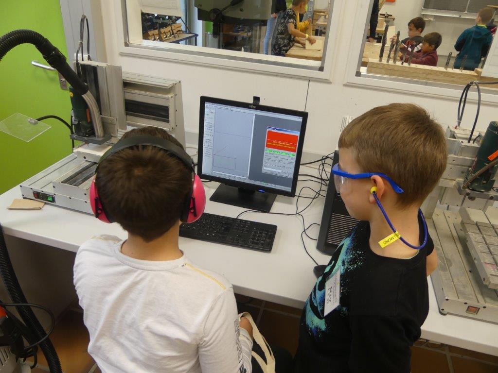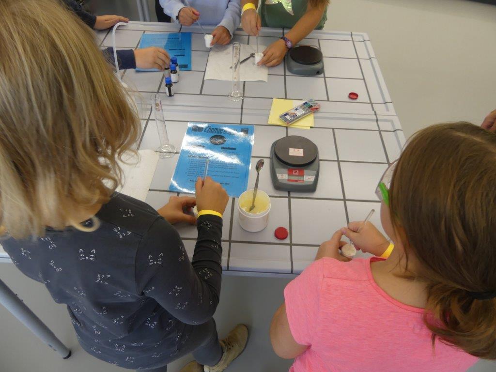 In drei Durchgängen – Corona geschuldet – durchliefen, unter Führung einer Lehrkraft, in jeweils 2 Gruppen, die 4. Klässler, die für sie vorbereiteten Stationen. Die Kinder konnten im Chemieraum selbst Handcreme herstellen, in Technik ihr Namenschild mit CAD fräsen, im Kunstraum etwas für Halloween basteln, sie durften in Robotik reinschnuppern und wurden von unseren 7. Klässlern ins Programmieren und Bauen von Robotern eingeführt, in Musik wurde mit Xylophonen musiziert, im Nähraum des hauswirtschaflichen Bereiches entstanden Anhänger mit den Anfangsbuchstaben der Namen, die Rallye fand dann ein offenes Ende in der Sporthalle, in der von den Sportlehrkräften die unterschiedlichsten Spiel- und Bewegungsmöglichkeiten vorbereitet waren, die die Kinder nutzen konnten, bis sie von ihren Eltern dort wieder abgeholt wurden. Im ganzen Schulhaus war ein fröhliches, buntes Treiben zu beobachten, der Spaß den die Kinder hatten, war ihnen deutlich anzusehen.
