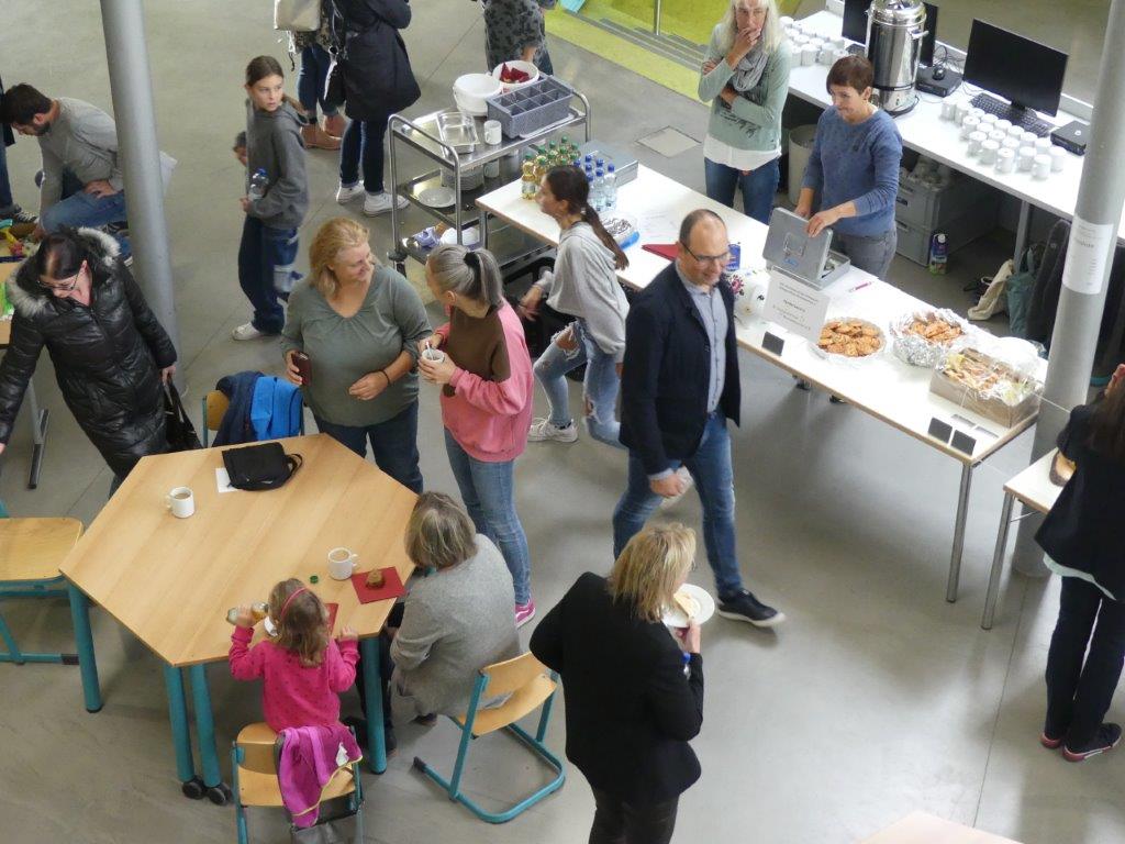 Während die Kinder die Stationen durchliefen, wurden die Eltern im Hörsaal von der Schulleitung über die Besonderheiten des Konzeptes am BZM informiert. Im Anschluss besichtigten sie gemeinsam mit Frau Wiedmann die grünen Klassenzimmer und wurden danach vom Förderverein mit Kaffee und Kuchen verwöhnt.