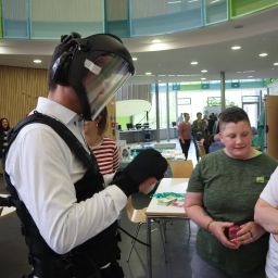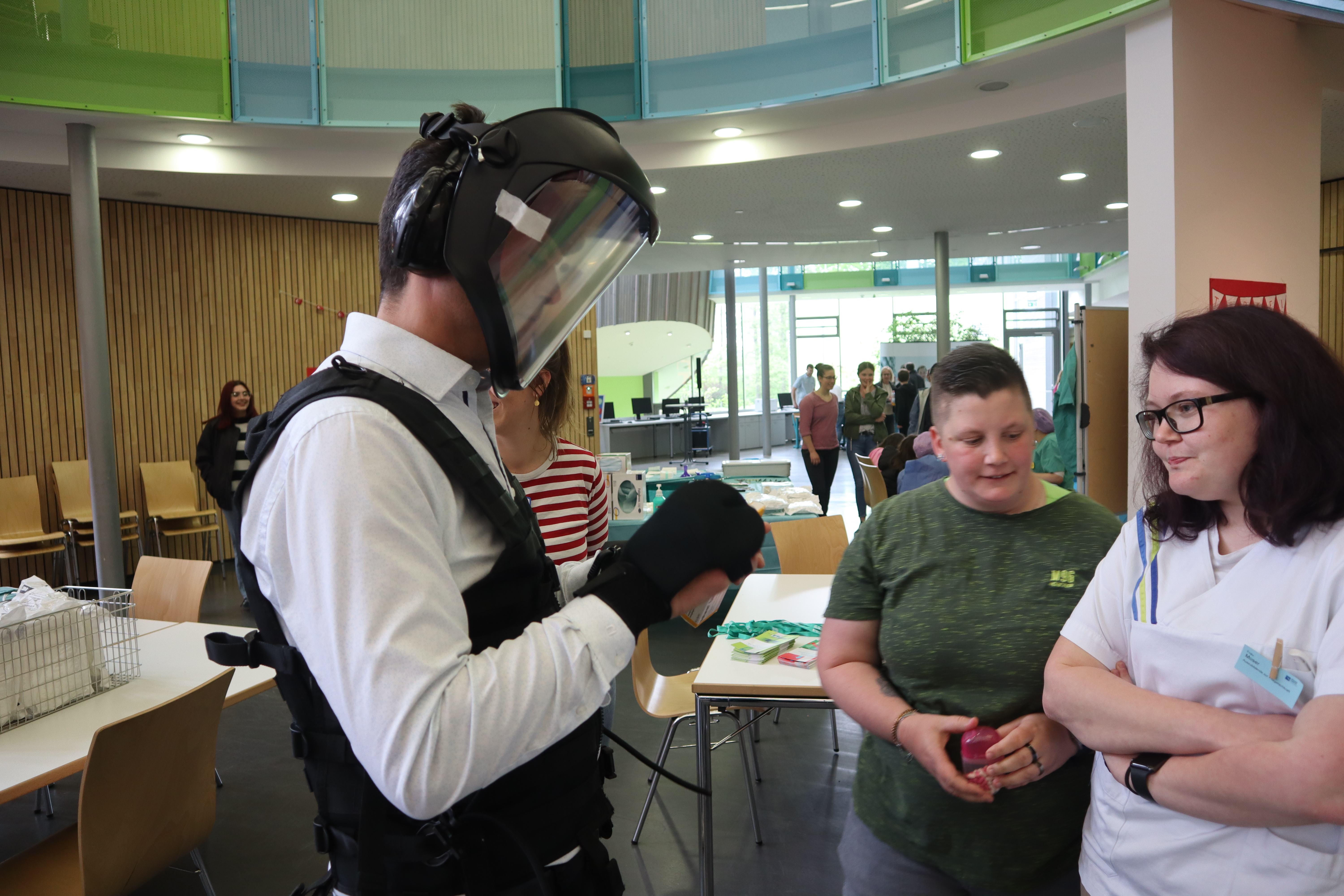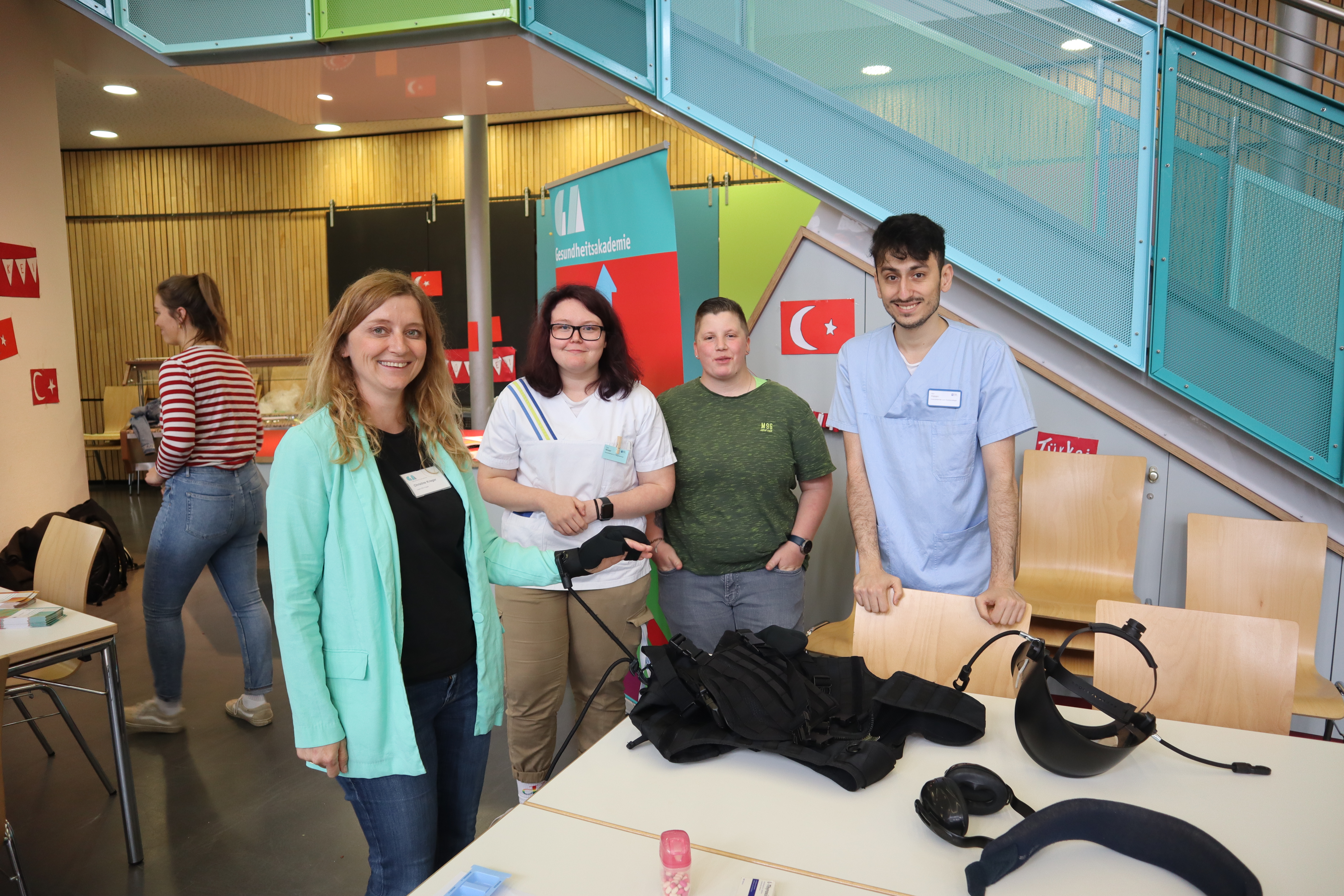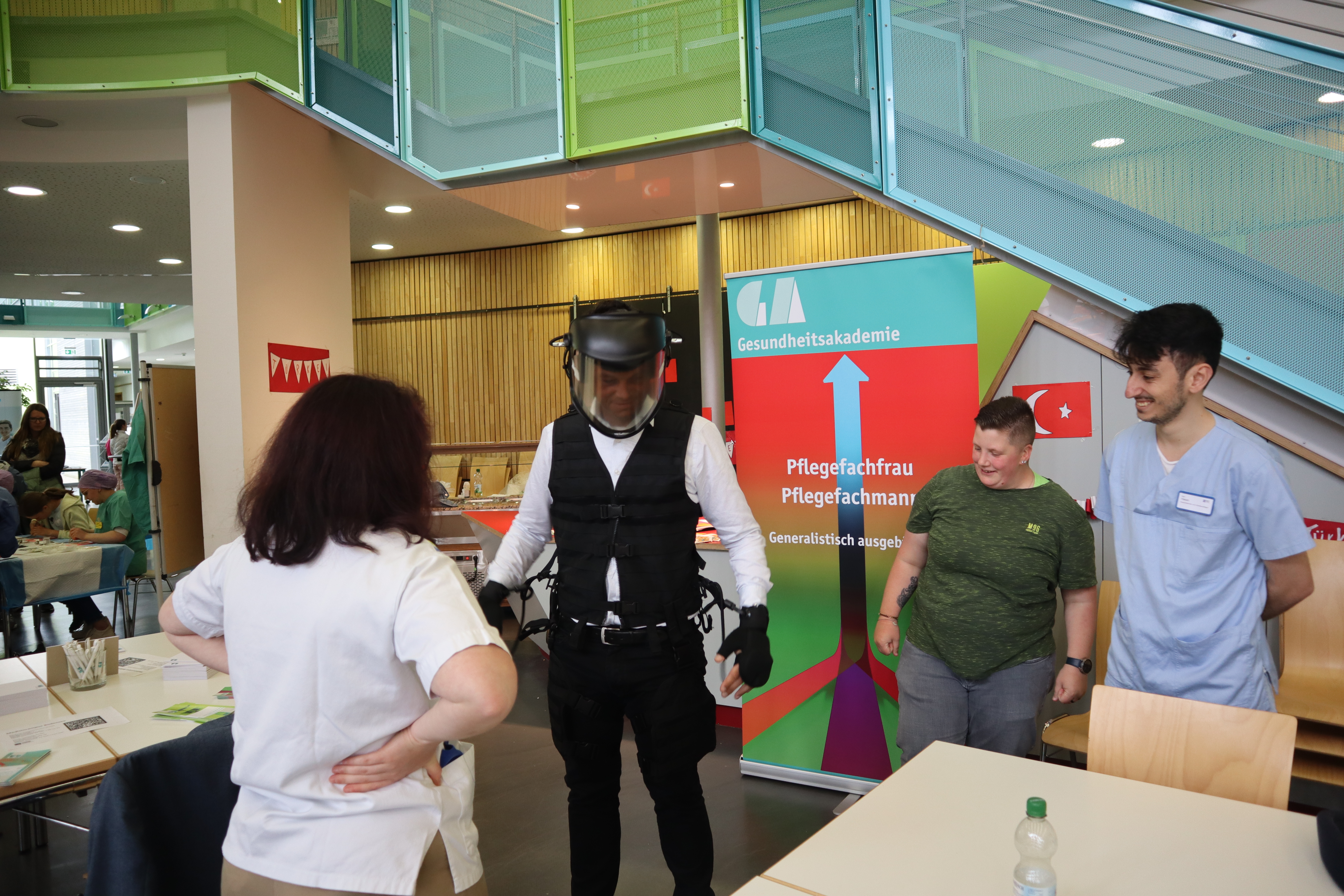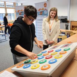 So konnten die jungen Besucher mit ihren Eltern am Mit-Mach-Stand der Bundespolizei sich über gefälschte Pässe informieren und mit dem Einstellungsberater ins Gespräch kommen. In sechs Workshoprunden suchte er Fehler und informierte über die beruflichen Möglichkeiten bei der Bundespolizei. Am Stand der Volksbank wurden Geldscheine auf Sicherheitsmerkmale untersucht. Die Berufewelt der Volksbank wurden in dem Zusammenhang dargestellt. Die jungen Menschen waren sich im Anschluss einig, dass sie nun sowohl auf die Reisepässe als auch auf die Geldscheine anders schauen und betrachten.