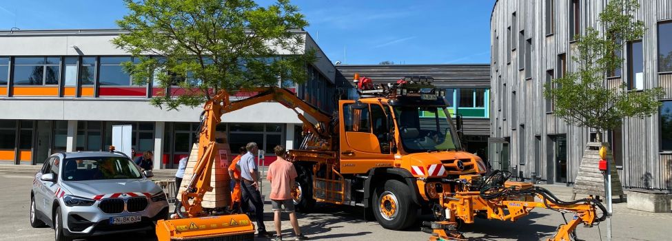 Ziel der Veranstaltung war es auf die Region hinzuweisen. Viele junge Menschen möchten nach ihrem Bildungsabschluss nicht so weit wegziehen, allerdings wissen sie oft nicht, welche Möglichkeiten es vor ihrer Haustür gibt. Von dem Beruf des Straßenwärters/in haben noch nicht allzu viele junge Menschen gehört. Straßen werden immer gebaut oder instandgehalten. Das Landratsamt hat mit seinem Unimog über die Berufewelt im Straßenbau informiert. Der Unimog konnte von den Besuchern besichtigt werden.