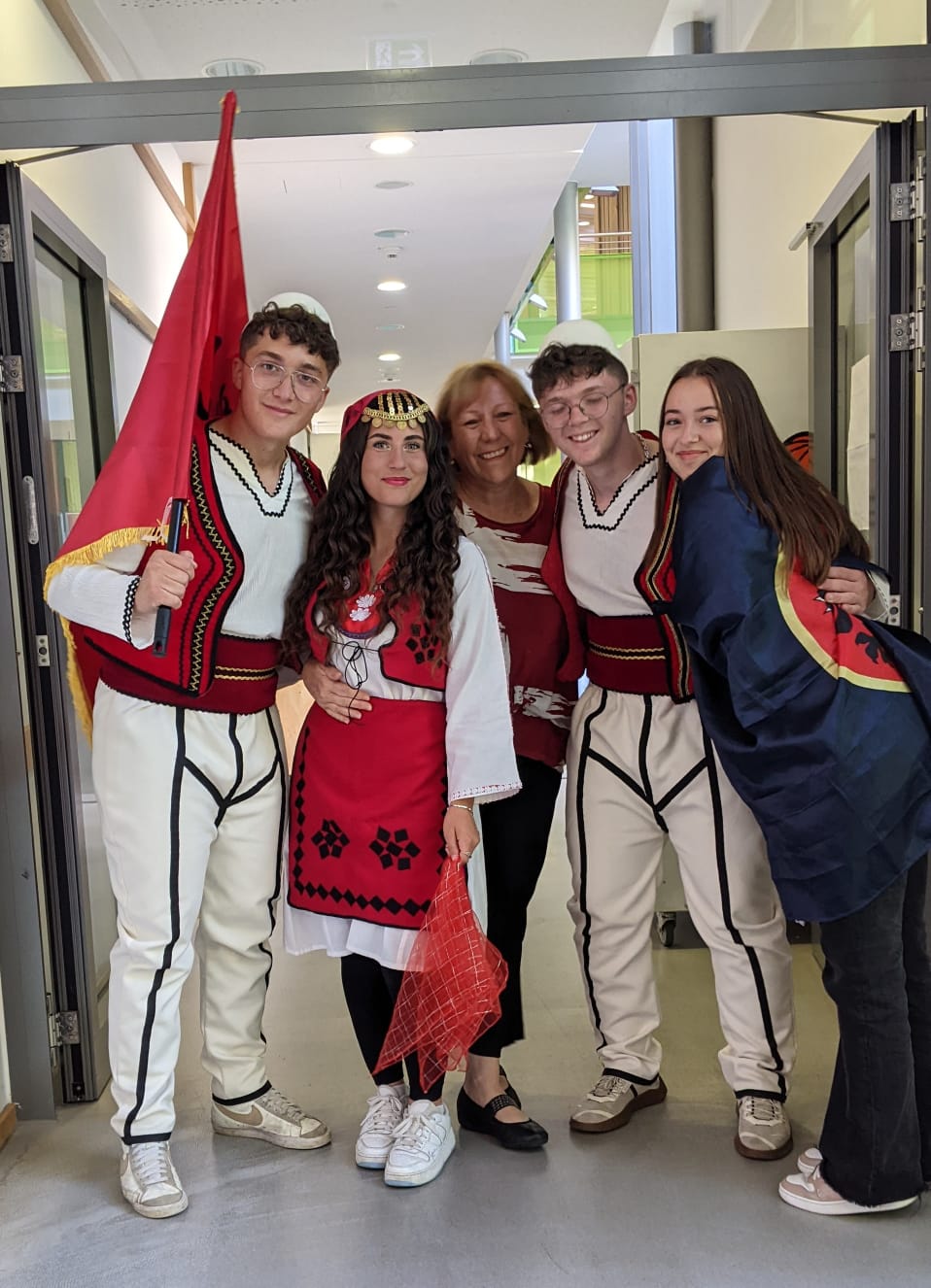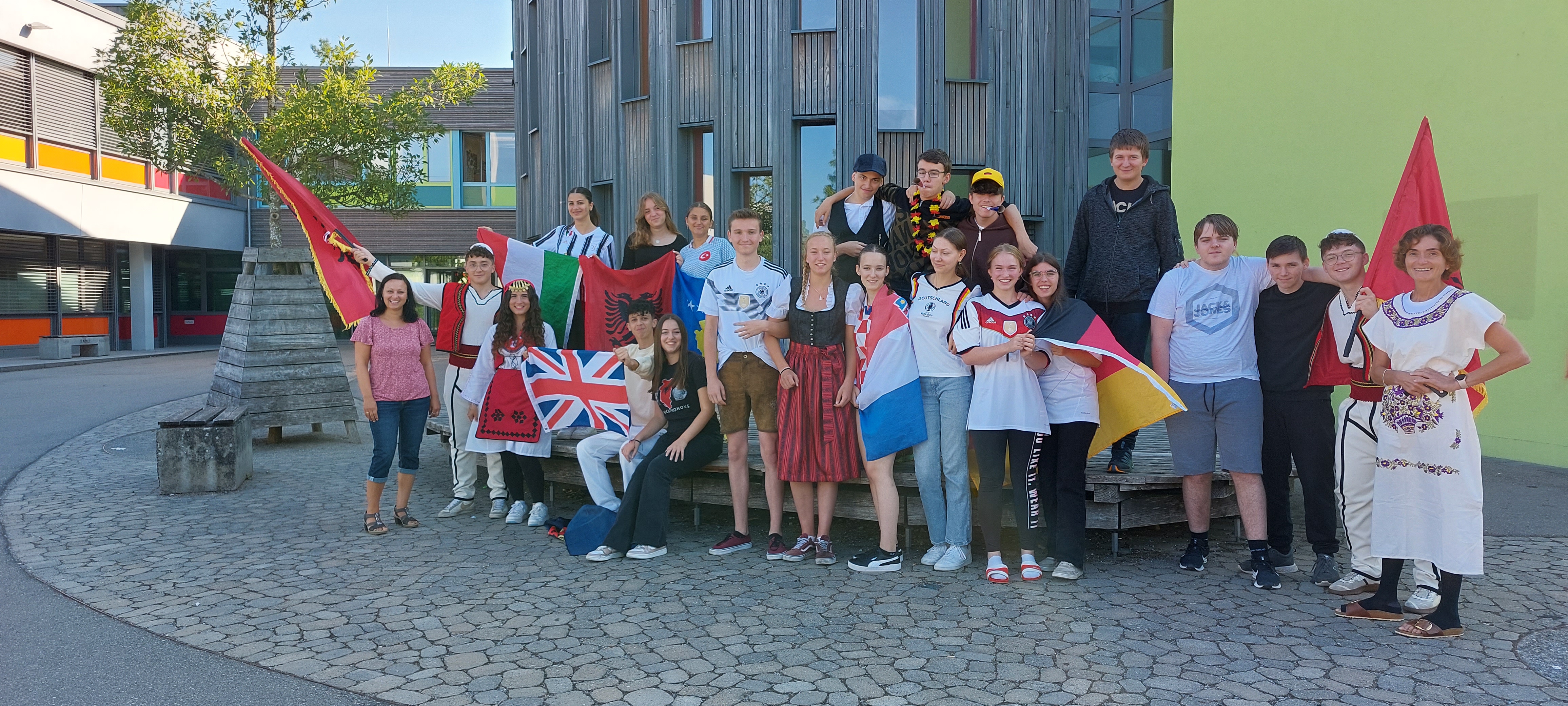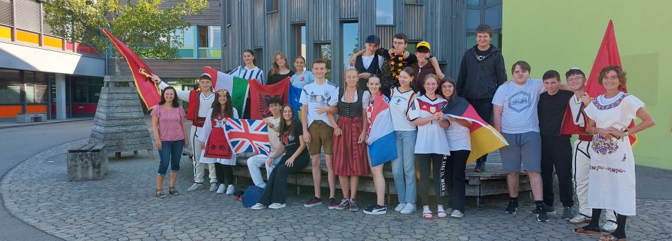 Die Woche vom 20.06 bis zum 24.06 startete mit „Everything but a bag“, also musste man seinen Schulranzen ersetzen. Wir waren sehr kreativ und brachten Katzenboxen, Rolatoren aber auch Einkaufswägen als Transportmittel für unsere Schulsachen mit. Am Dienstag haben wir die Zeitmaschine angeworfen und sind zurück in die „70er und 80er Jahre“ gereist, aber auch „Flowerpower“ war sehr angesagt. Am nächsten Tag gings mit der Zeitmaschine zurück ins hier und jetzt-nach Deutschland. Nach dem Motto „Typisch Deutsch“ war von Nationalspielern über Bayern bis hin zu Wanderern alles vertreten. Am Donnerstag ist der gesamte Unterricht entfallen, daher wurde das Motto „Kindheitshelden“ auf den folgenden Dienstag verschoben. Zum Glück konnten es sich Robin Hood, die Minions und die wilden Kerle auch am Dienstag einrichten J. Beim krönenden Abschluss, dem „Roten Teppich“ durfte sich jeder nochmal „herausputzen“