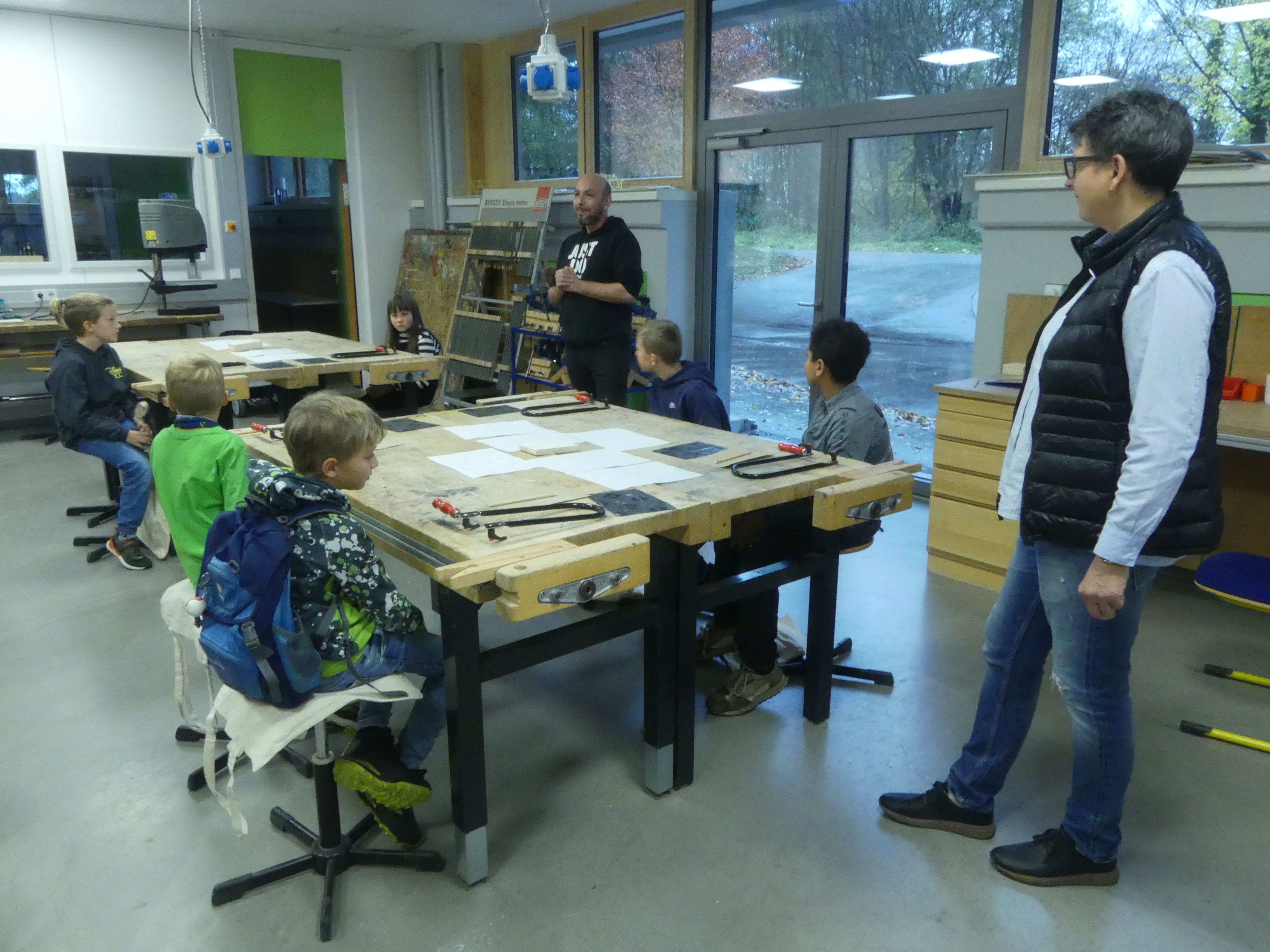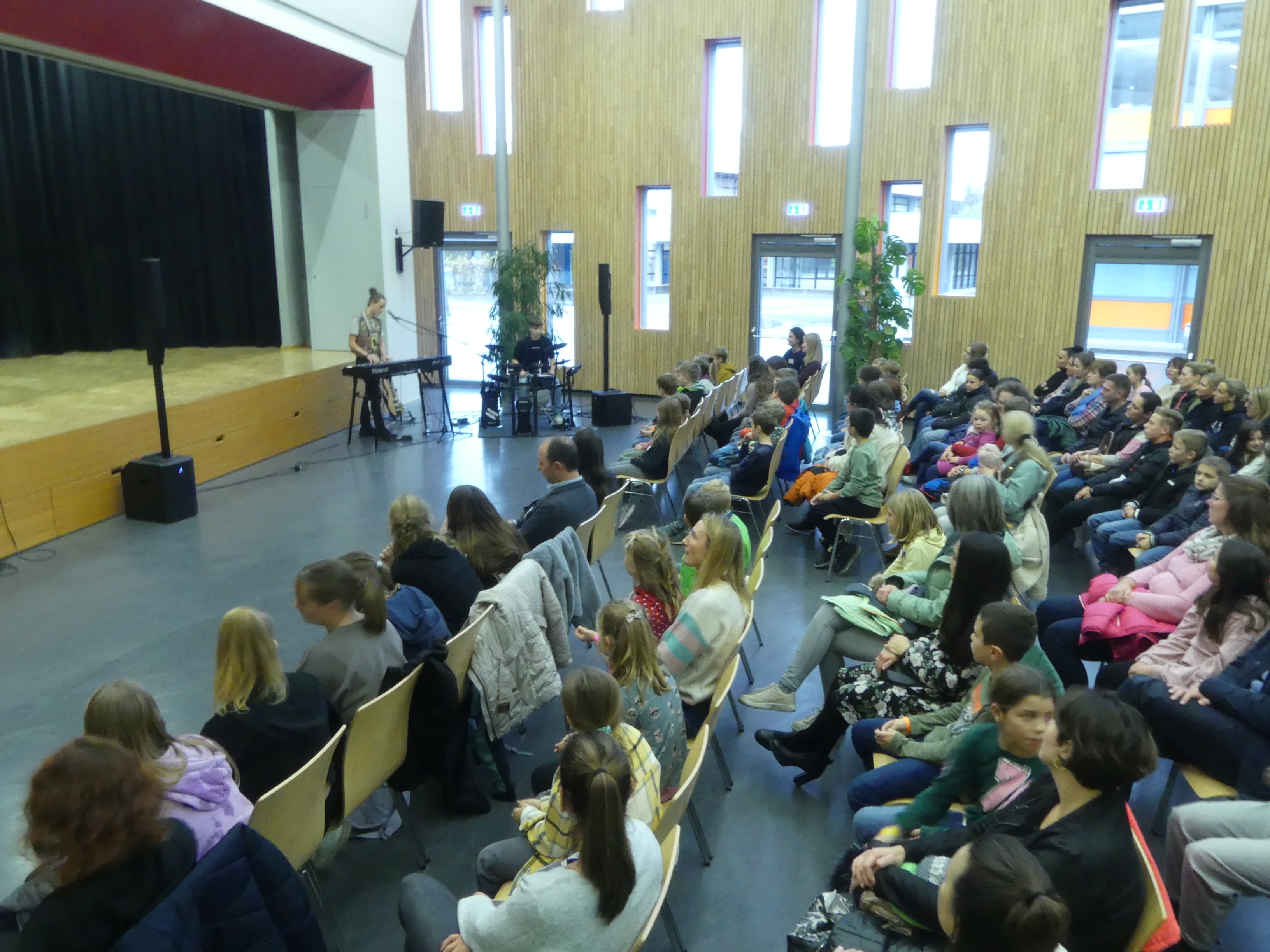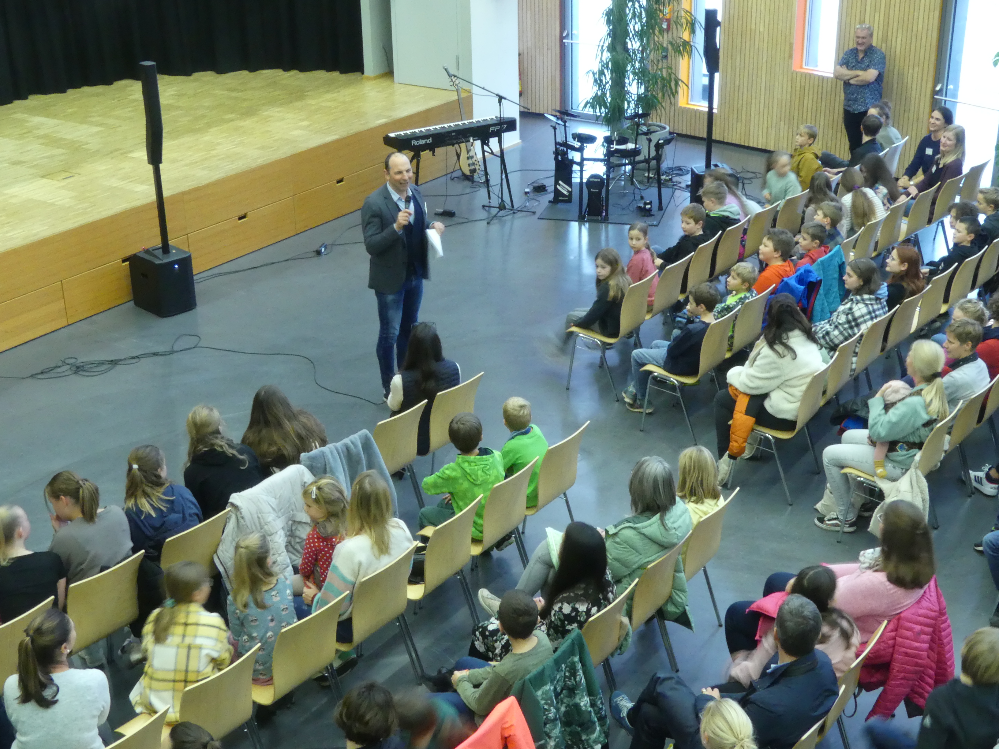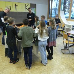 Doch auch für die Eltern der teilnehmenden Kinder war etwas geboten: Frau Wiedmann und Herr Walker luden Interessierte in den Hörsaal ein und informierten über das pädagogische Konzept unserer Schule.