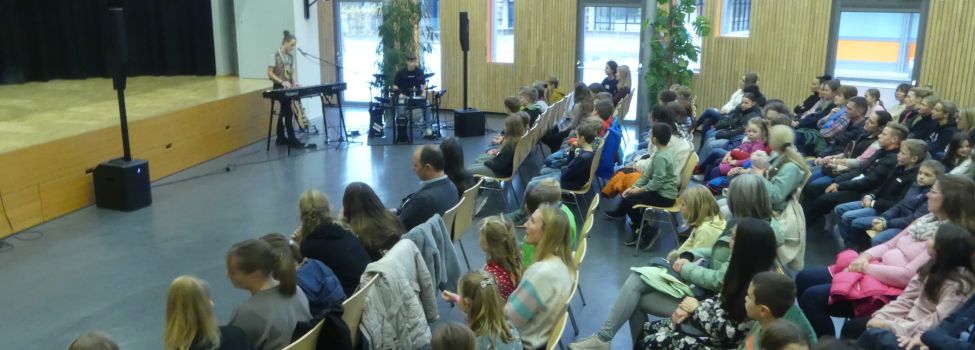 Nach der Begrüßung durch die Schulleiterin Frau Wiedmann, die mit rockigen Musikstücken der Schulband und einer Tanzeinlage untermalt wurde, teilte Konrektor Alexander Walker die Grundschüler in Gruppen ein und startete die Rallye offiziell.
