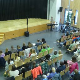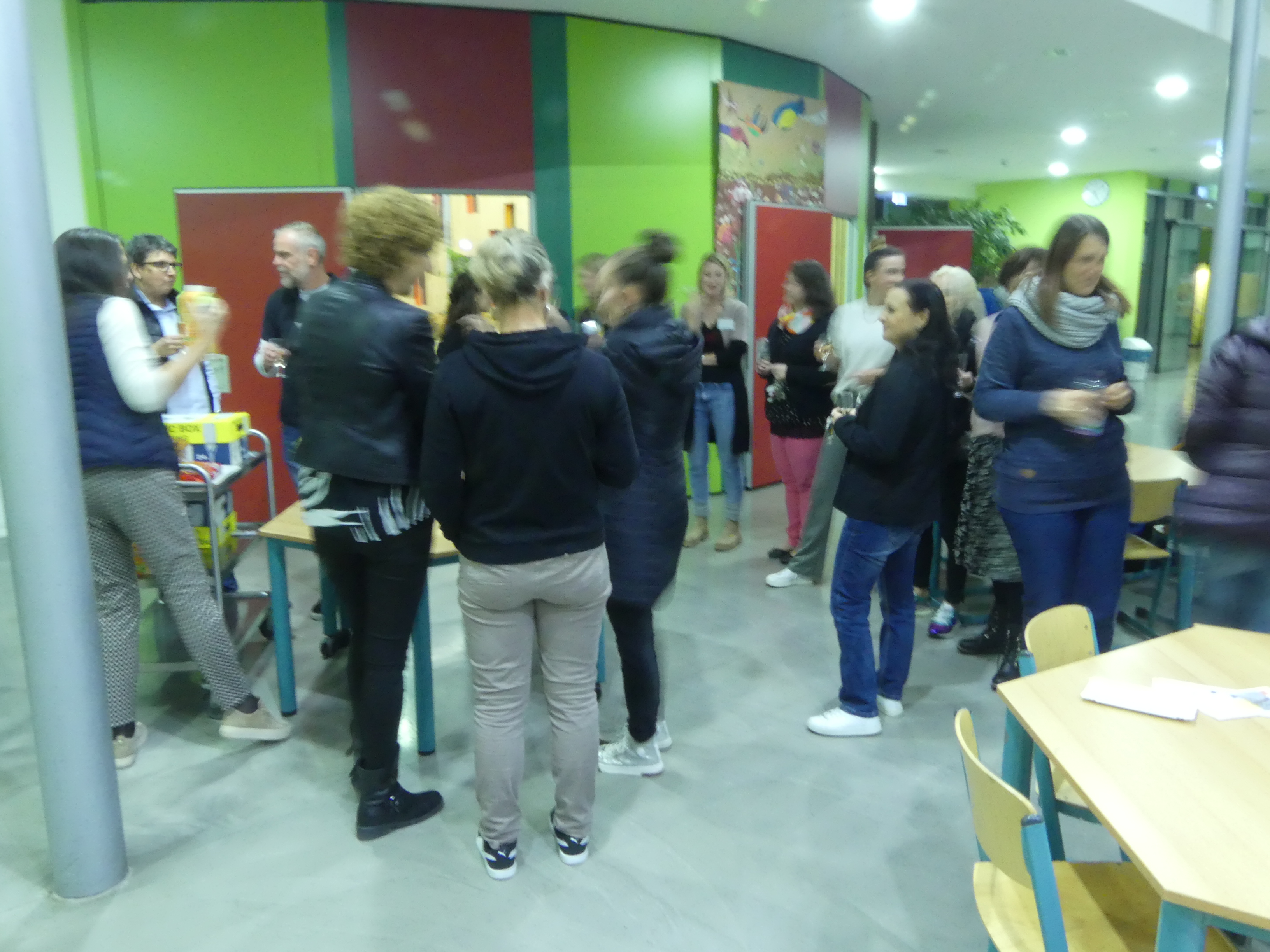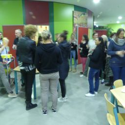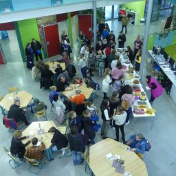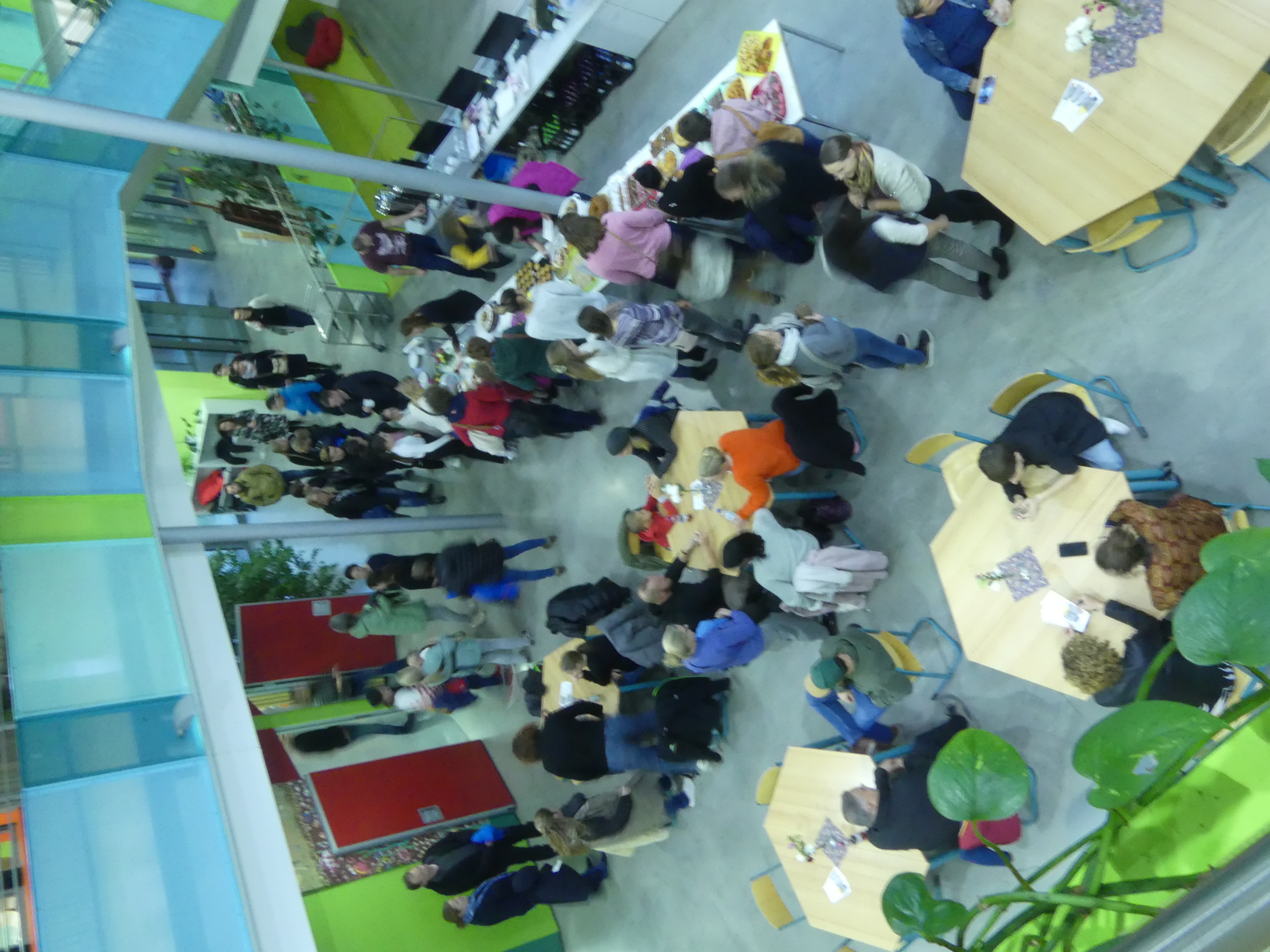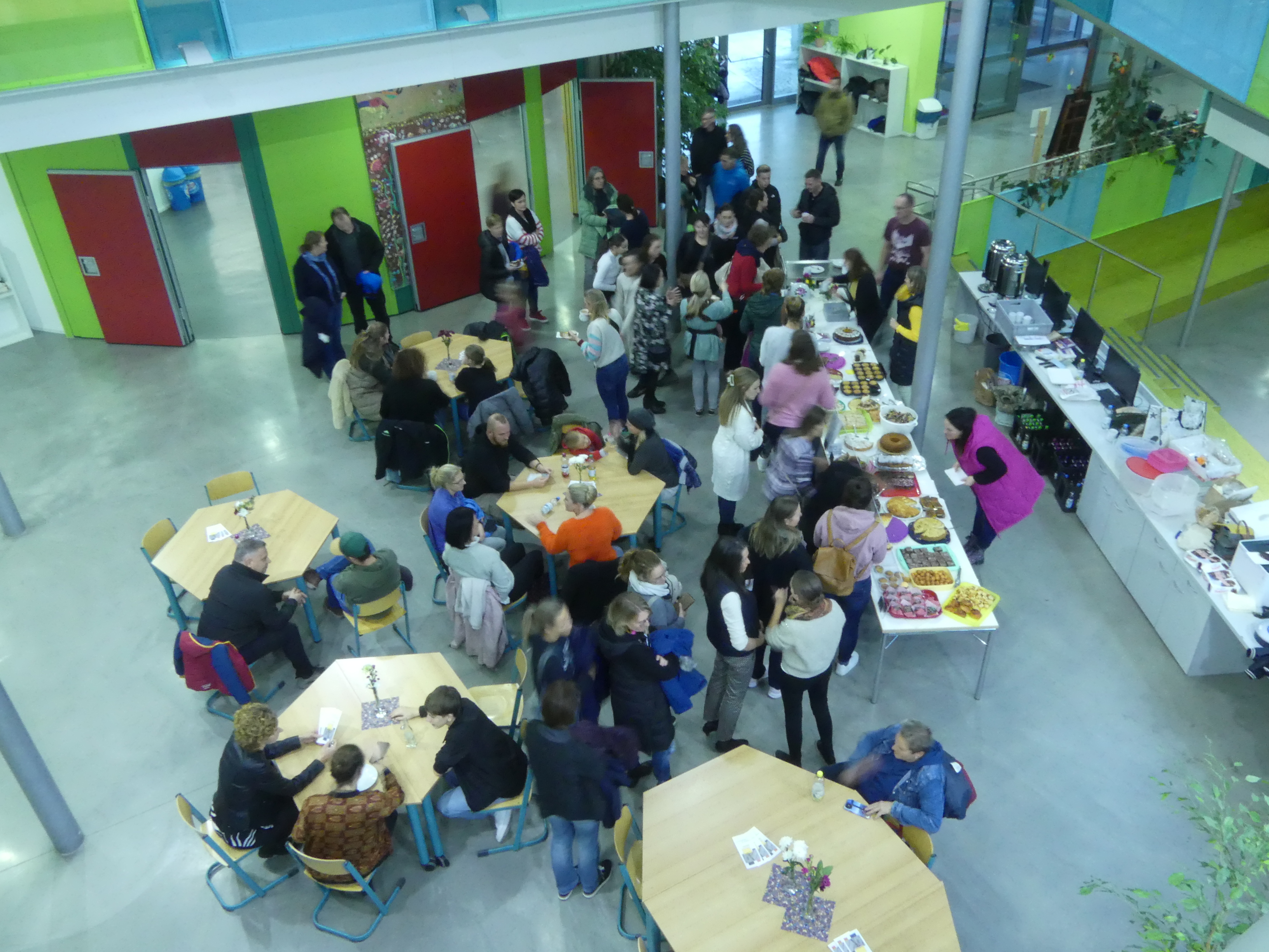 Wer sich danach bei Kaffee und Kuchen stärken oder einfach im gemütlichen Beisammensein mit anderen Eltern oder den anwesenden Lehrern austauschen wollte, konnte dies in der Eingangshalle tun, dank der reichhaltigen Bewirtung durch den Schulförderverein.