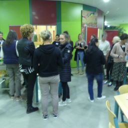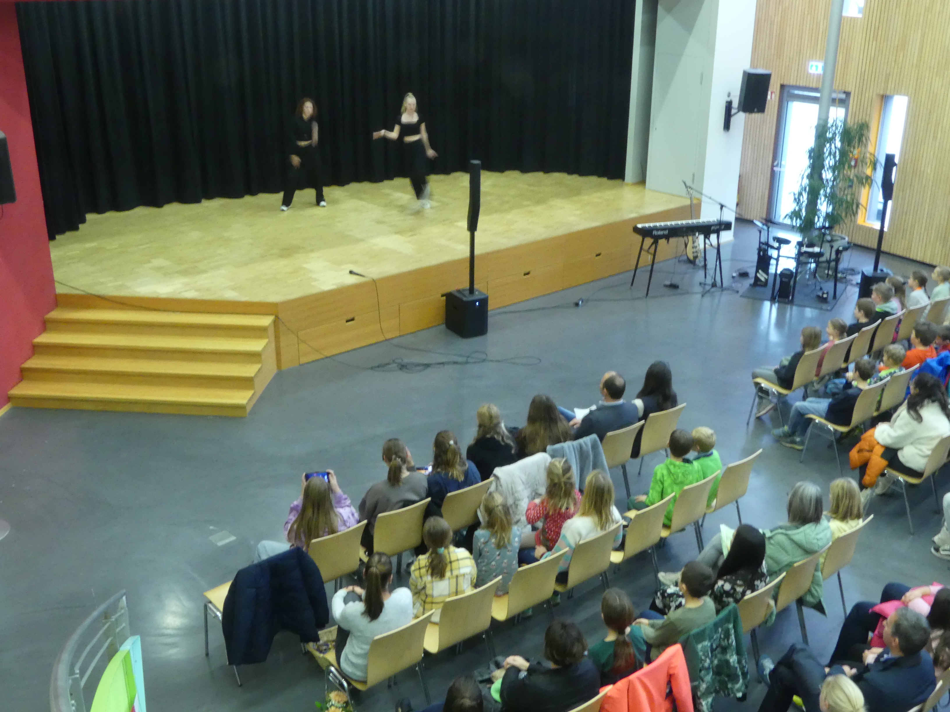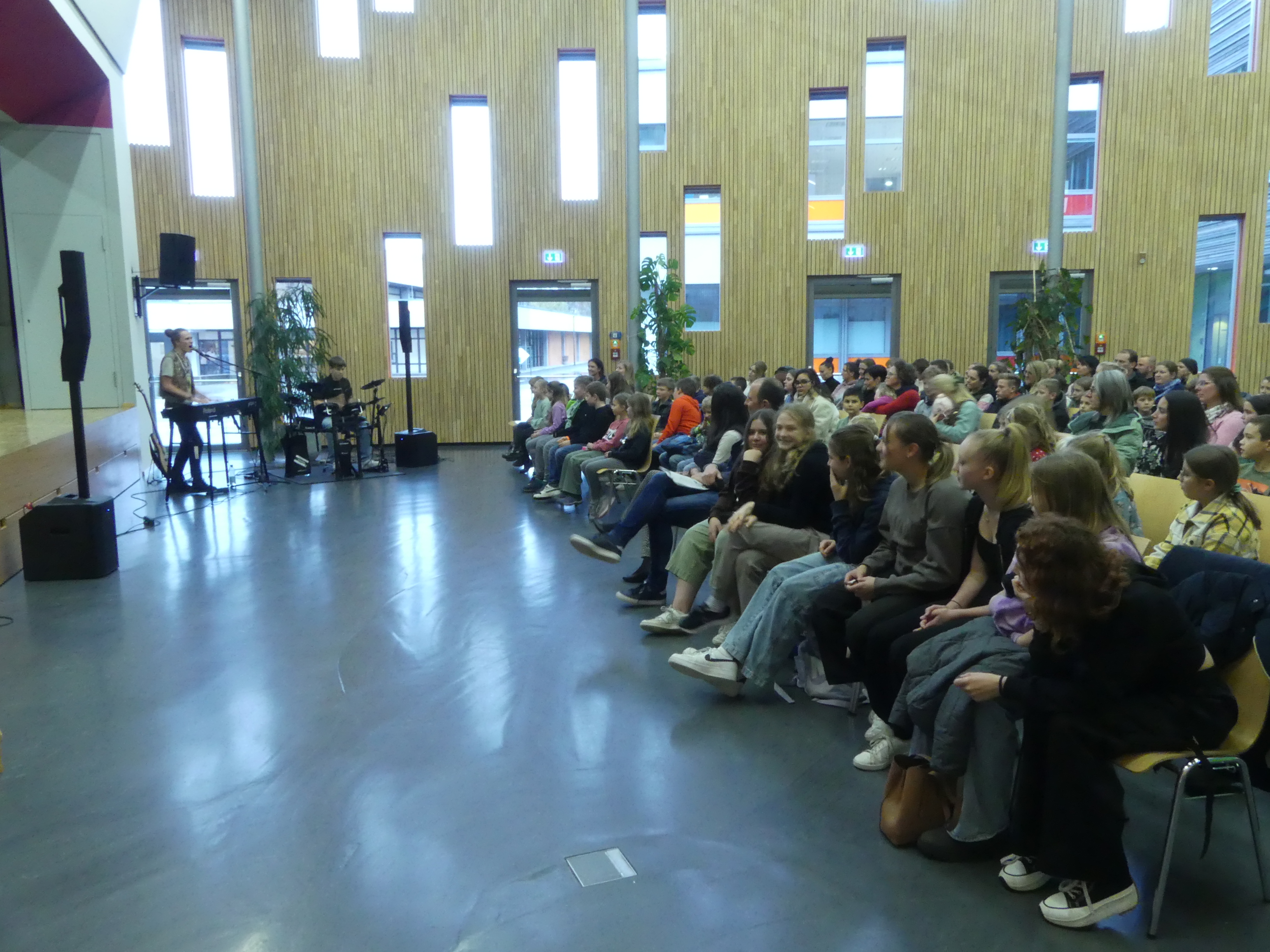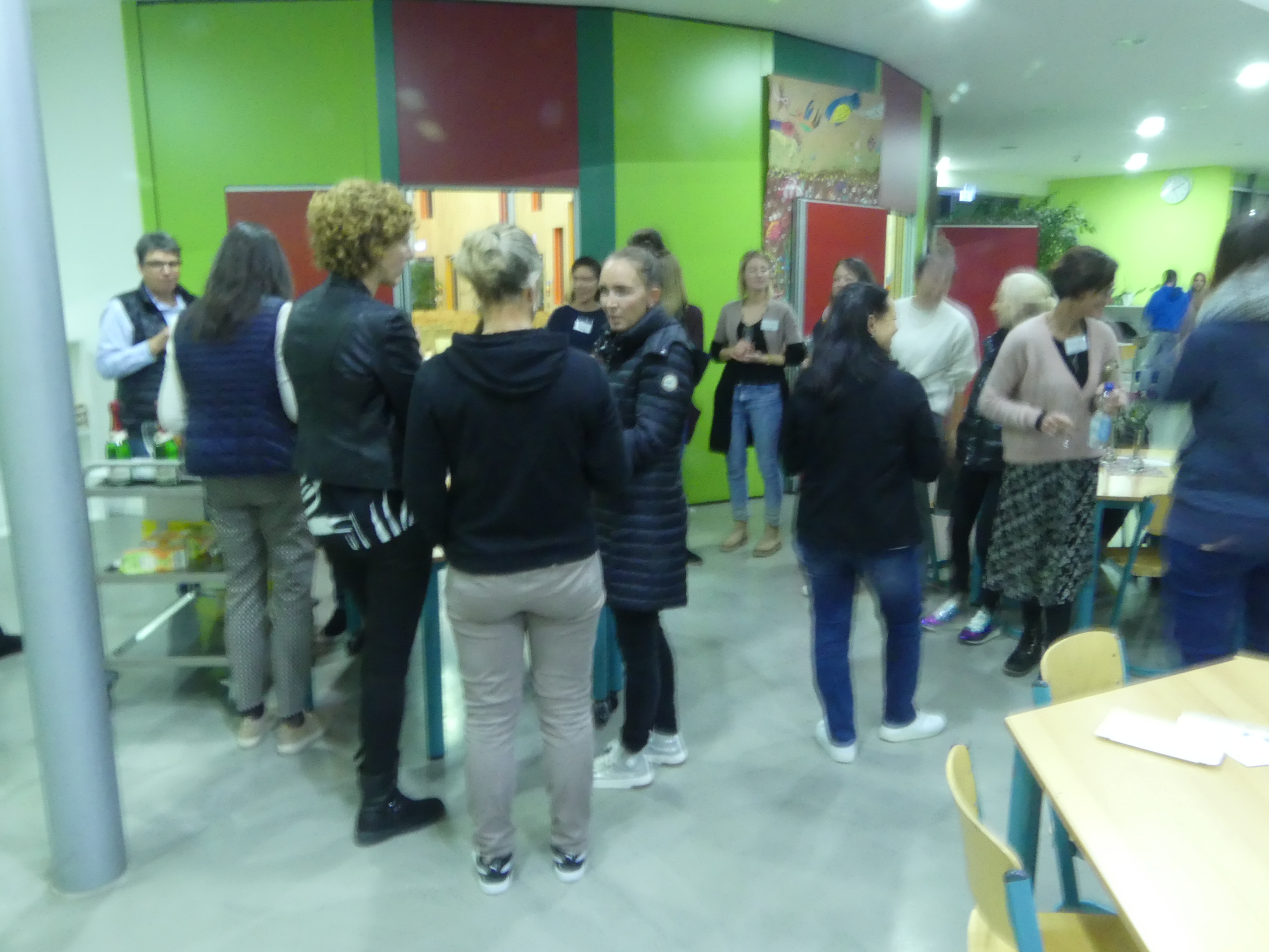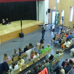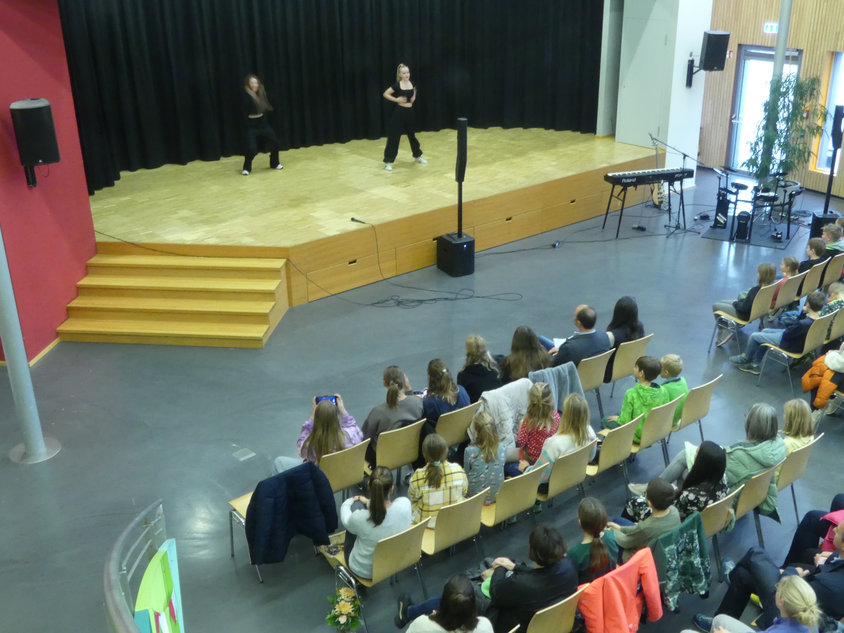 Wer sich danach bei Kaffee und Kuchen stärken oder einfach im gemütlichen Beisammensein mit anderen Eltern oder den anwesenden Lehrern austauschen wollte, konnte dies in der Eingangshalle tun, dank der reichhaltigen Bewirtung durch den Schulförderverein.