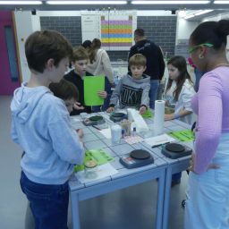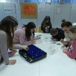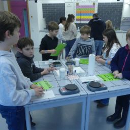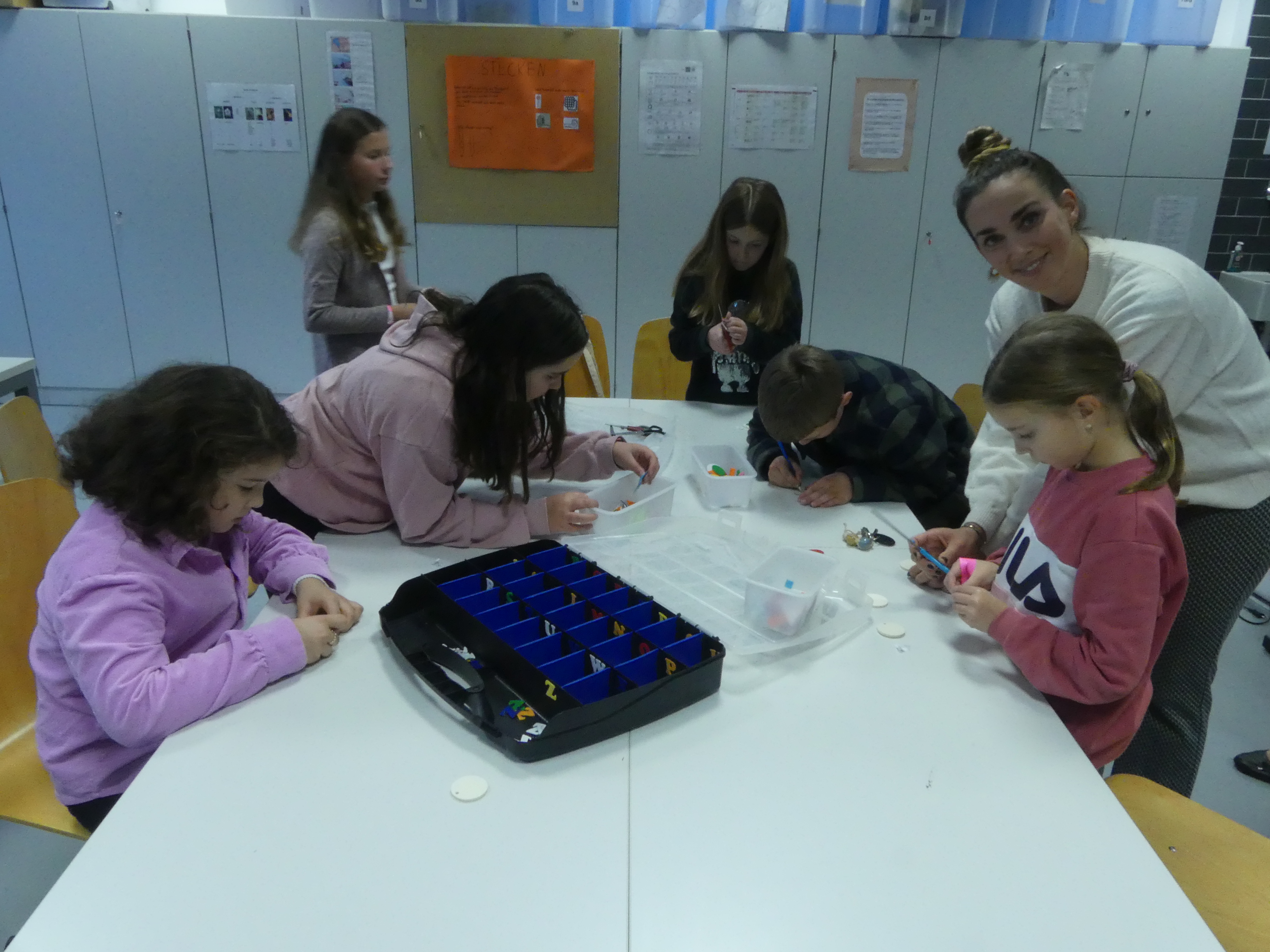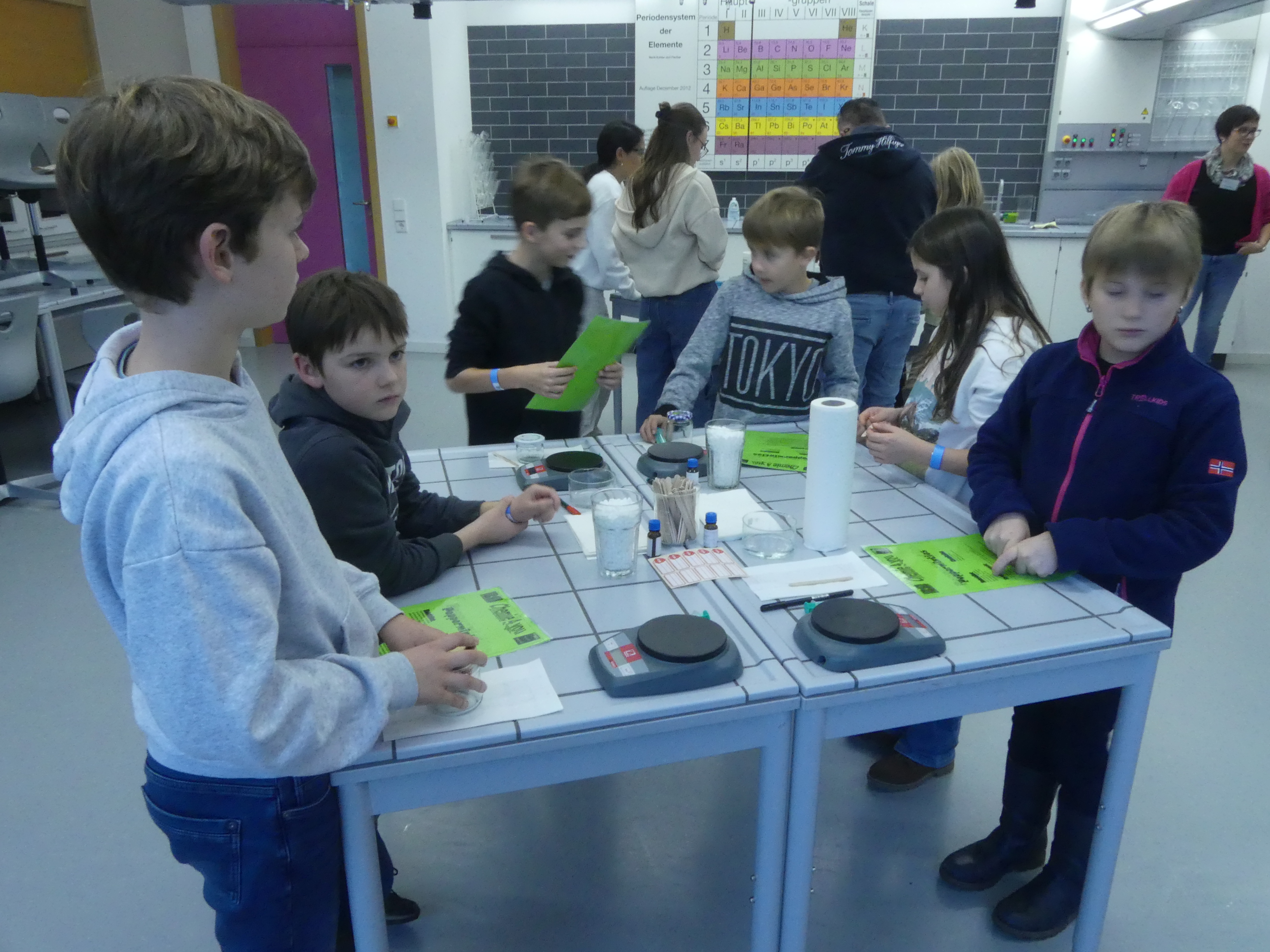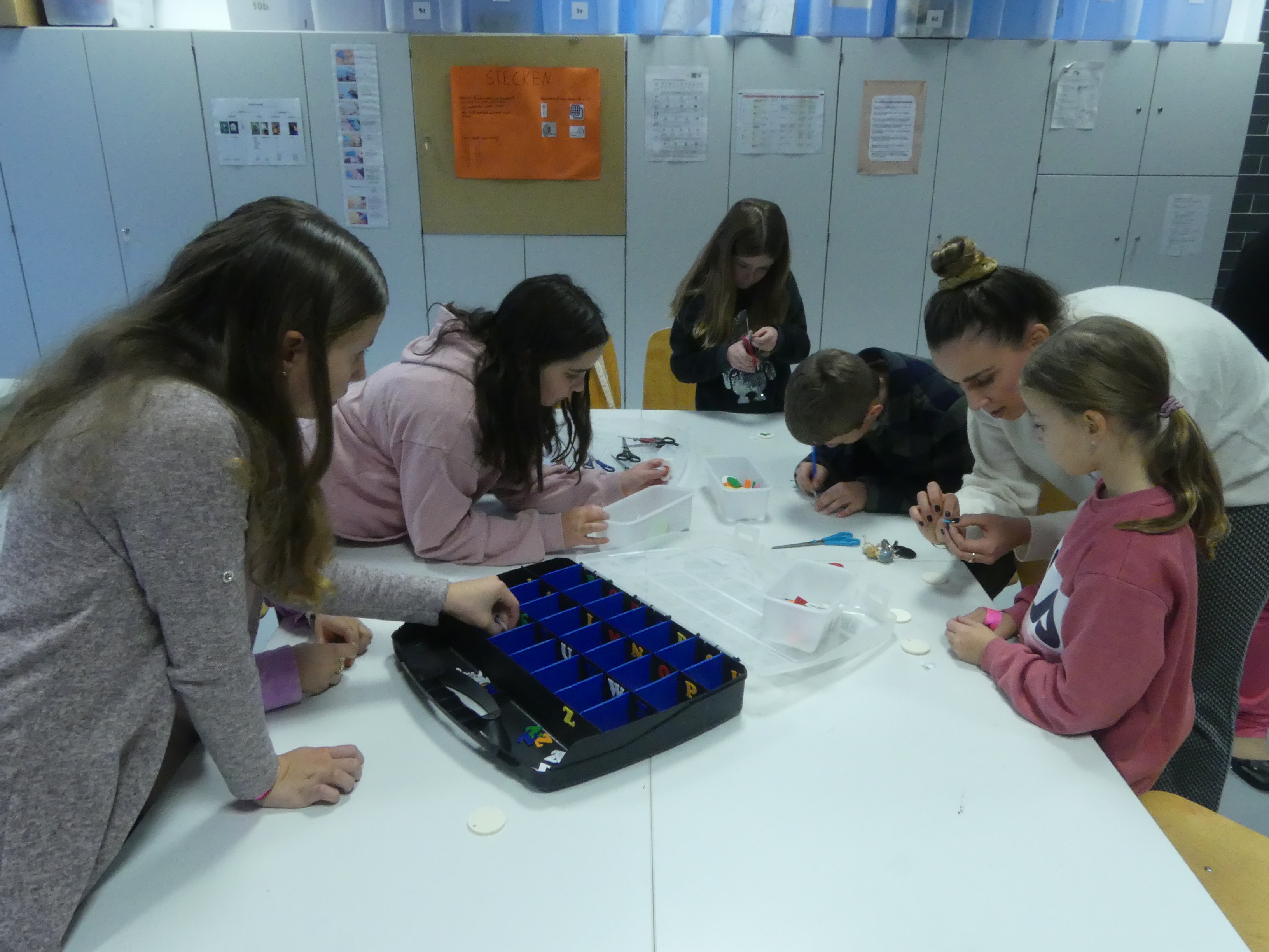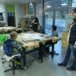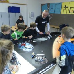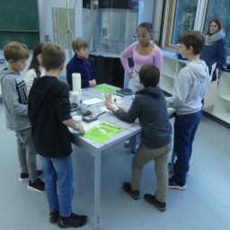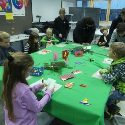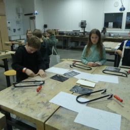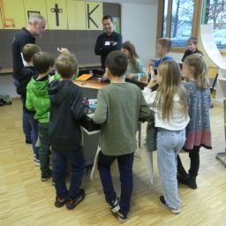 So durften sie im Kunstraum bei der Herstellung von Weihnachtsschmuck gestalterisch tätig werden, im Technikraum ihr Geschick bei einer Laubsägearbeit zeigen, im Chemieraum Pfefferminzbonbons und Hautcreme herstellen, im Musiksaal eine Melodie einüben, im Nähraum einen Schlüsselanhänger anfertigen und im Zimmer der Robotik-AG an der Programmierung eines Roboters mitwirken.