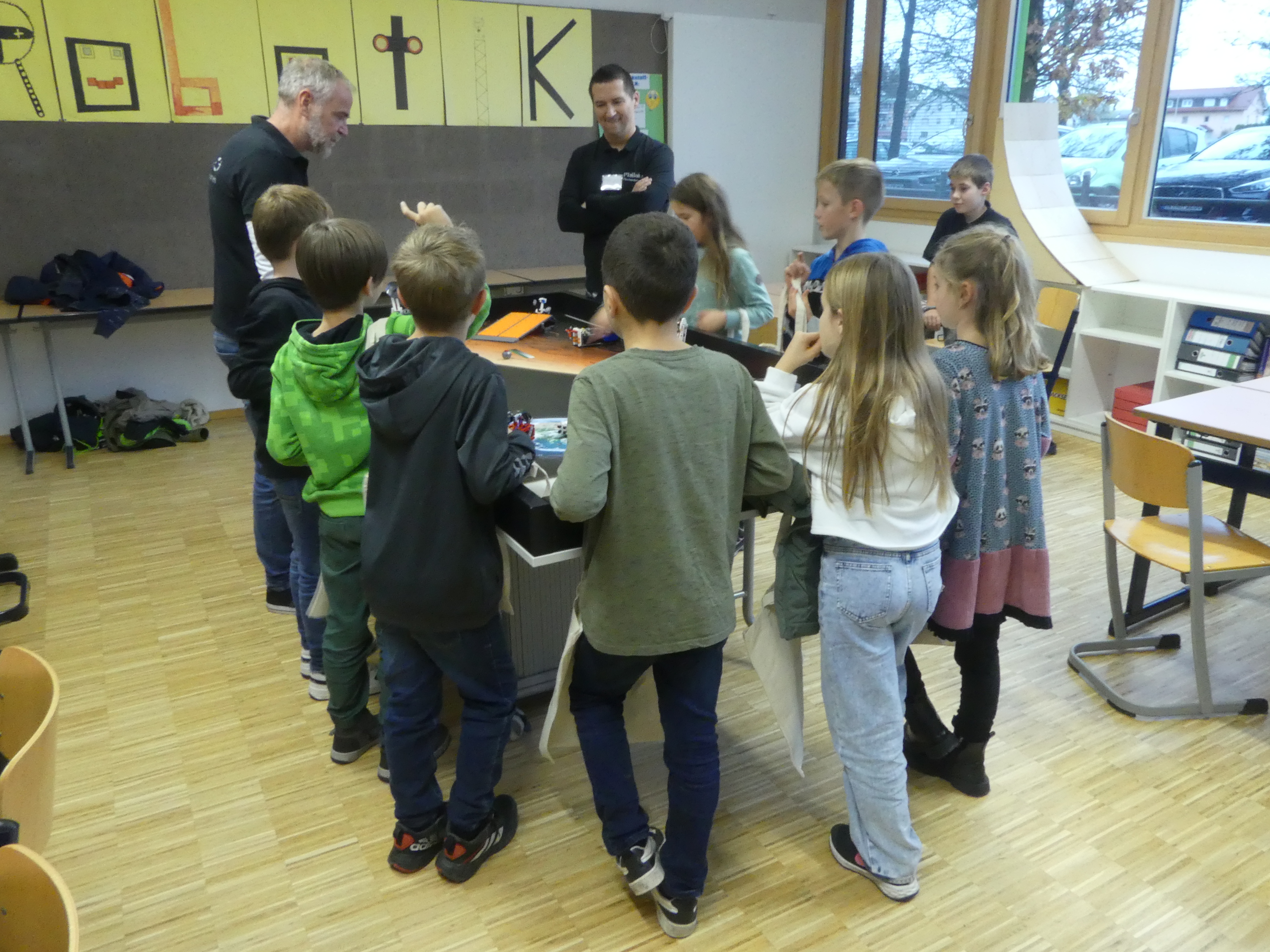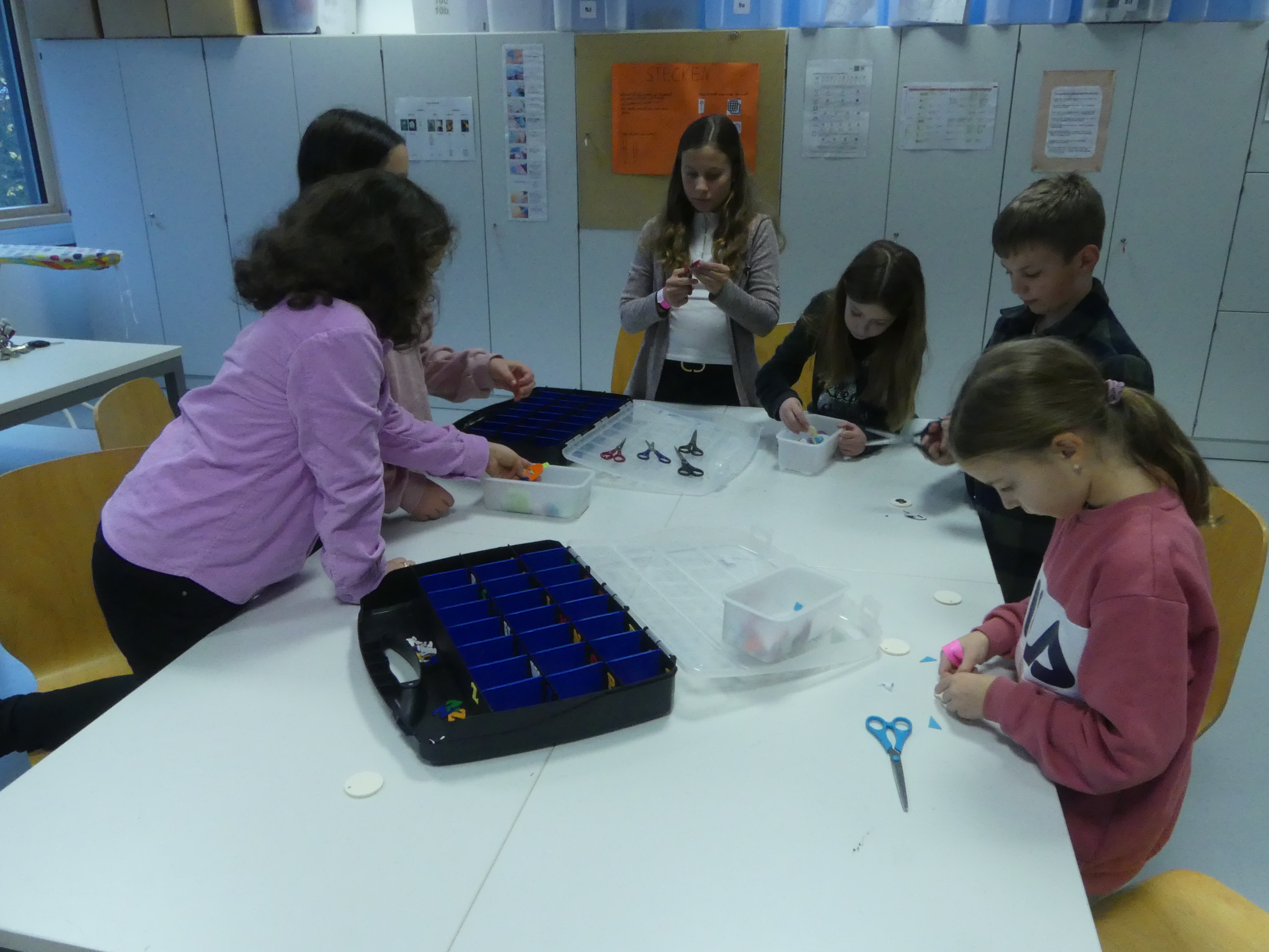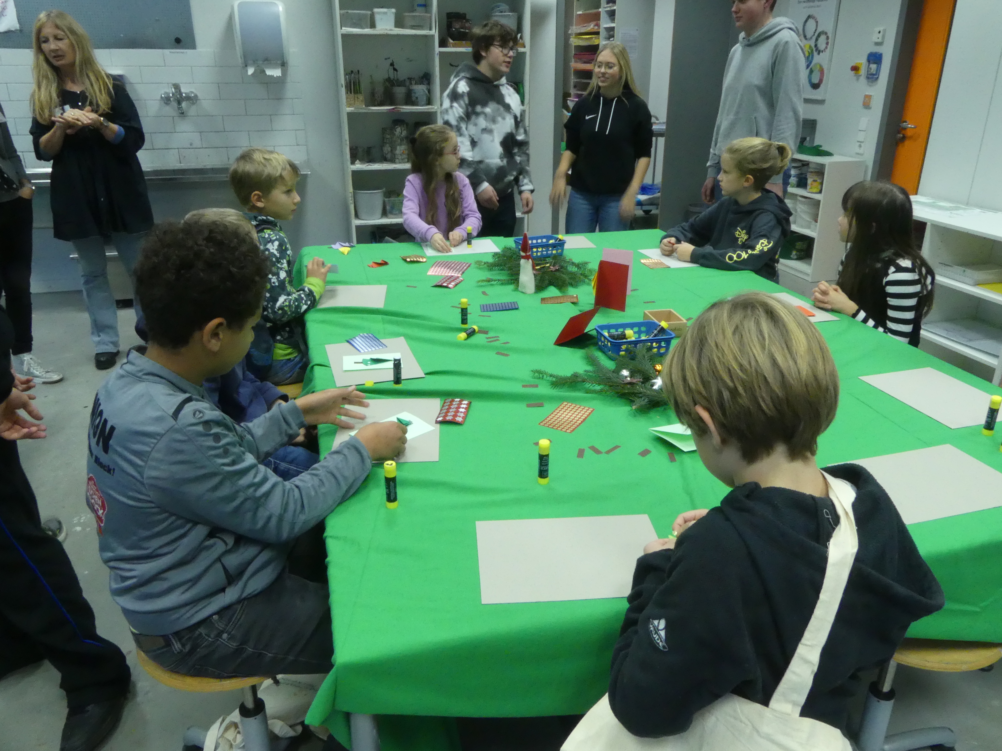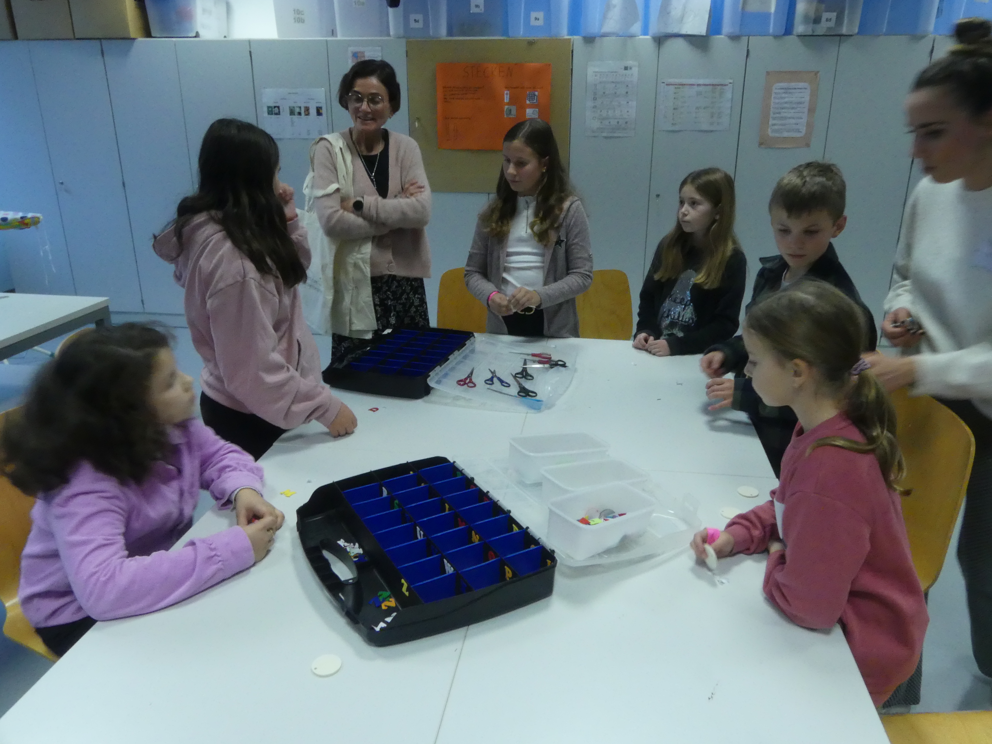 So durften sie im Kunstraum bei der Herstellung von Weihnachtsschmuck gestalterisch tätig werden, im Technikraum ihr Geschick bei einer Laubsägearbeit zeigen, im Chemieraum Pfefferminzbonbons und Hautcreme herstellen, im Musiksaal eine Melodie einüben, im Nähraum einen Schlüsselanhänger anfertigen und im Zimmer der Robotik-AG an der Programmierung eines Roboters mitwirken.
