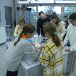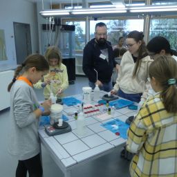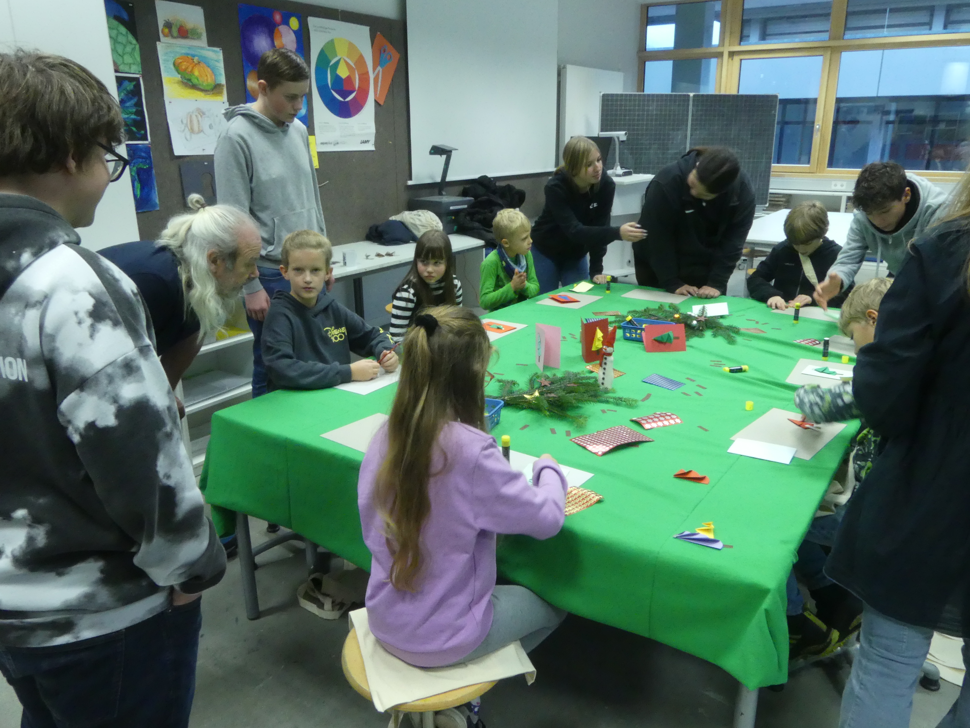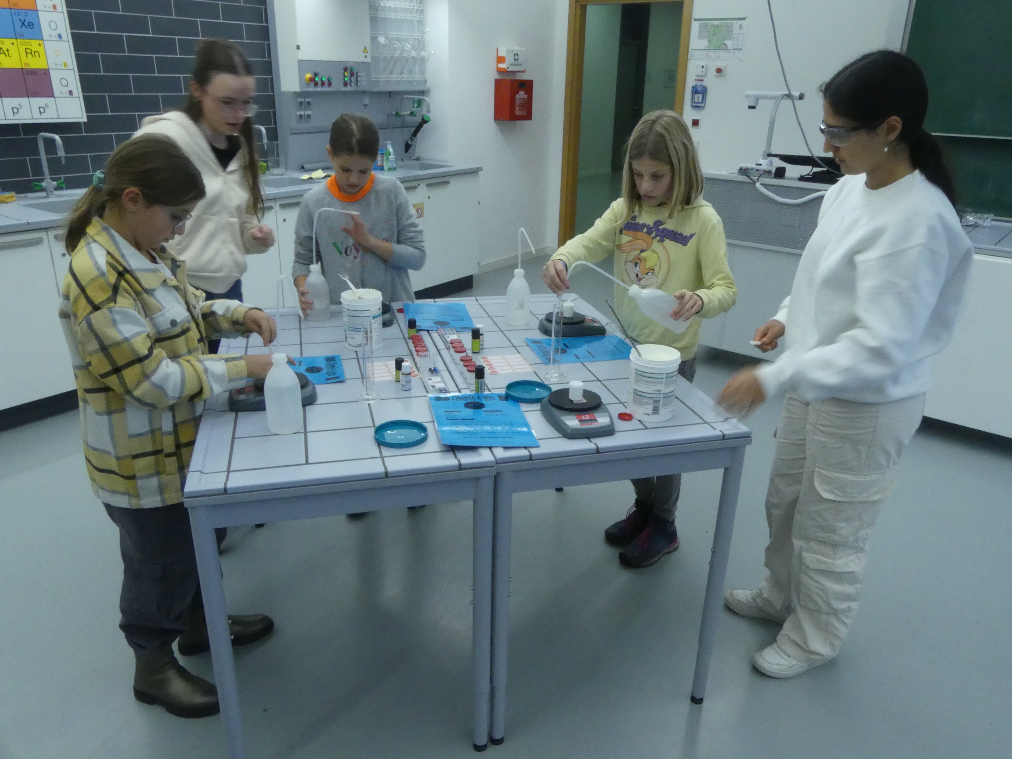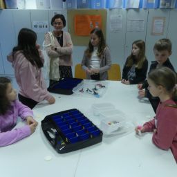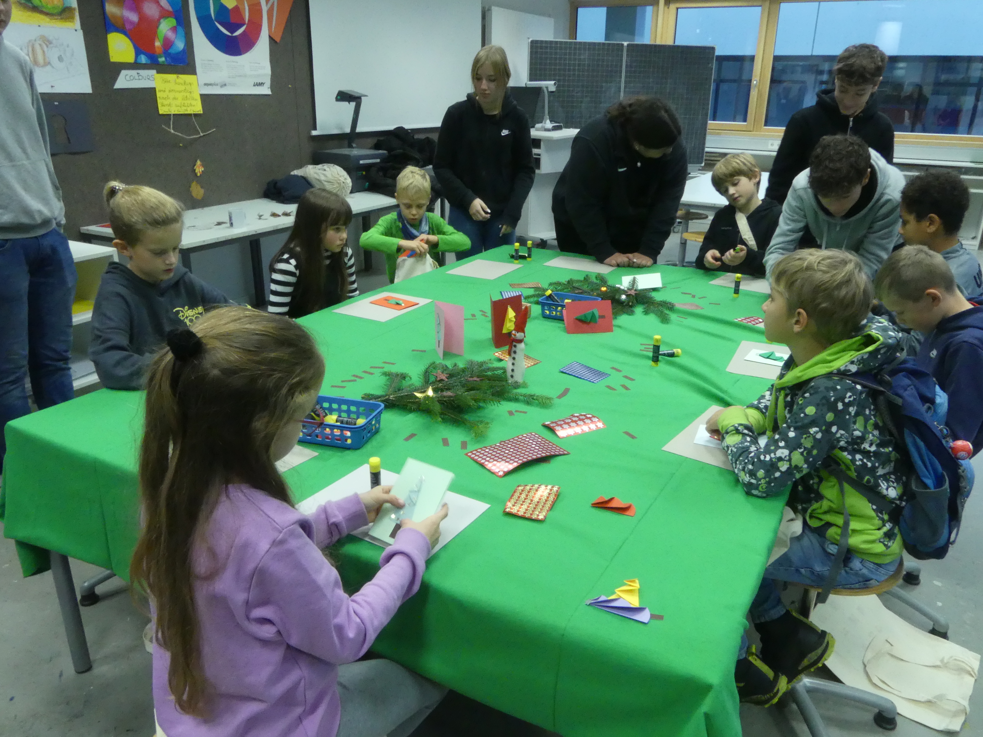 So durften sie im Kunstraum bei der Herstellung von Weihnachtsschmuck gestalterisch tätig werden, im Technikraum ihr Geschick bei einer Laubsägearbeit zeigen, im Chemieraum Pfefferminzbonbons und Hautcreme herstellen, im Musiksaal eine Melodie einüben, im Nähraum einen Schlüsselanhänger anfertigen und im Zimmer der Robotik-AG an der Programmierung eines Roboters mitwirken.