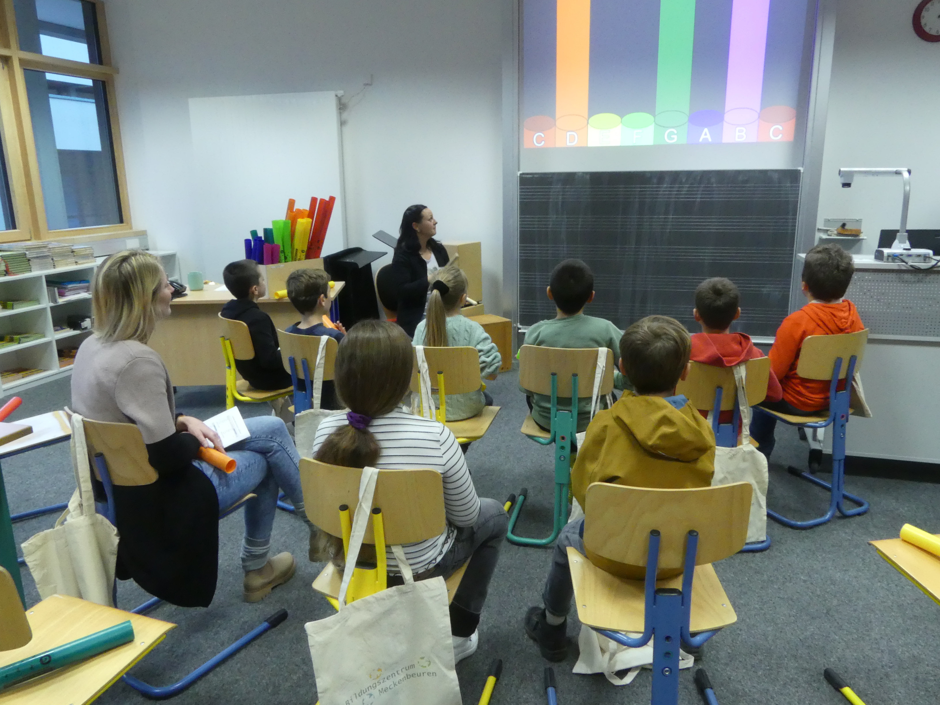 52 Schülerinnen und Schüler der Grundschulen aus Meckenbeuren und Umgebung hatten sich angemeldet und konnten sowohl einige der Lehrkräfte der Schule kennenlernen als auch Eindrücke vom Schulgebäude und insbesondere von den Fachräumen sammeln.