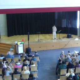 Wer sich danach bei Kaffee und Kuchen stärken oder einfach im gemütlichen Beisammensein mit anderen Eltern oder den anwesenden Lehrern austauschen wollte, konnte dies in der Eingangshalle tun, dank der reichhaltigen Bewirtung durch den Schulförderverein.