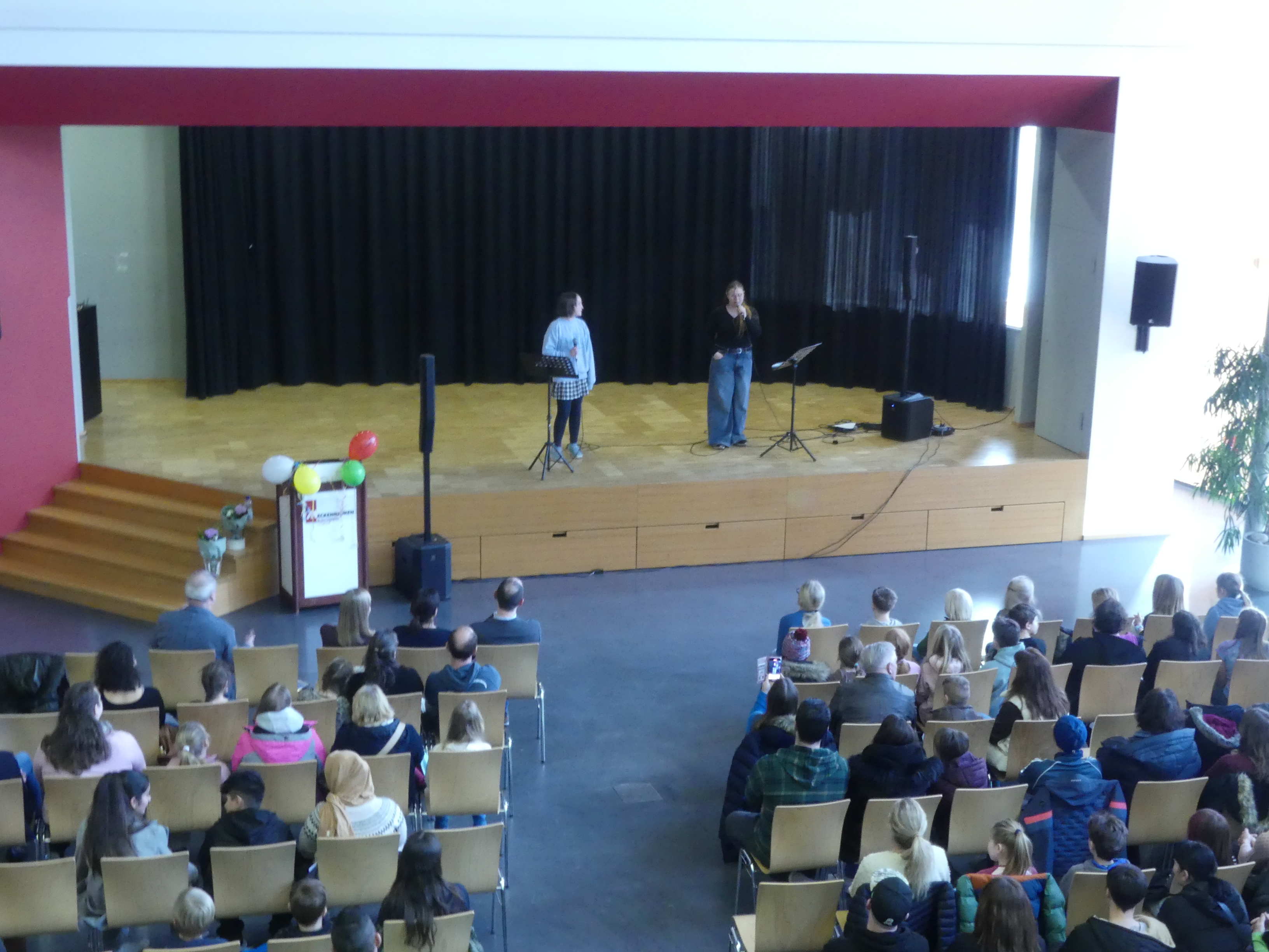 der Begrüßung, die mit mehreren Gesangstücken der Schulband untermalt wurde, teilte