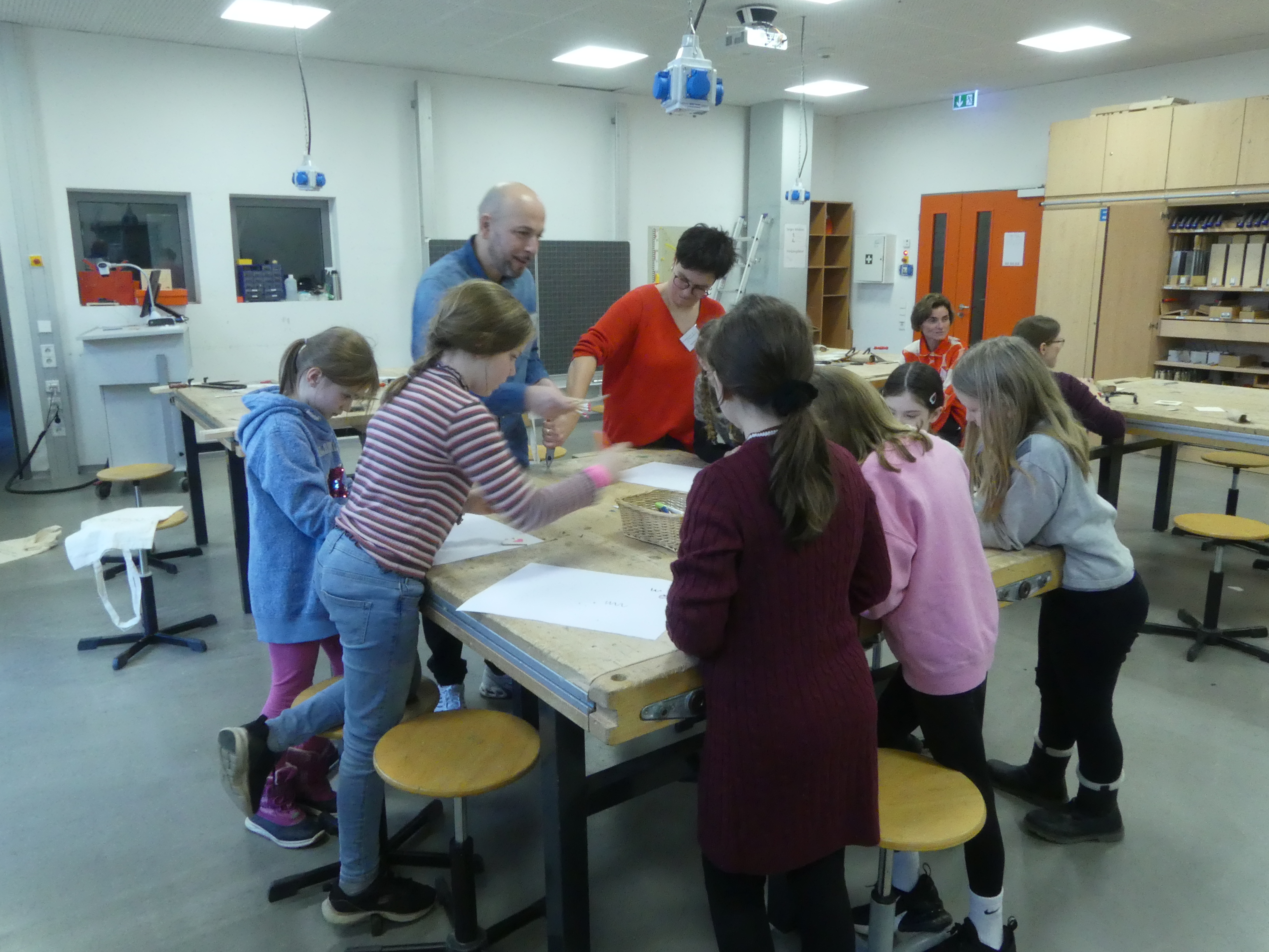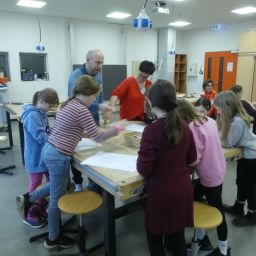 werden, im Technikraum ihr technisches Geschick bei einer Laubsägearbeit