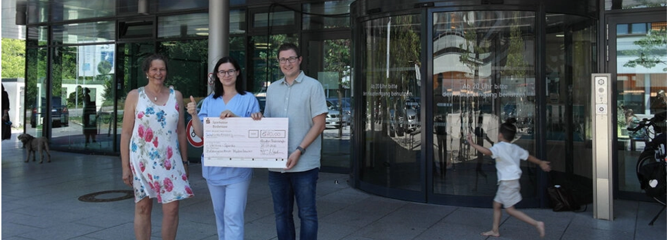 Friedrichshafen (MCB) – Schüler der Werkrealschule und der Realschule am Bildungszentrum Meckenbeuren sammelten 670 Euro für medizinische Hilfe in der Ukraine. Rektorin Ulrike Wiedmann überreichte den Spendenscheck zusammen mit Benjamin Gwinn, Vorsitzender des Fördervereins des Bildungszentrums, an Assistenzärztin Daria Shchybria von der Klinik für Gynäkologie und Geburtshilfe des Klinikums Friedrichshafen.