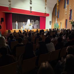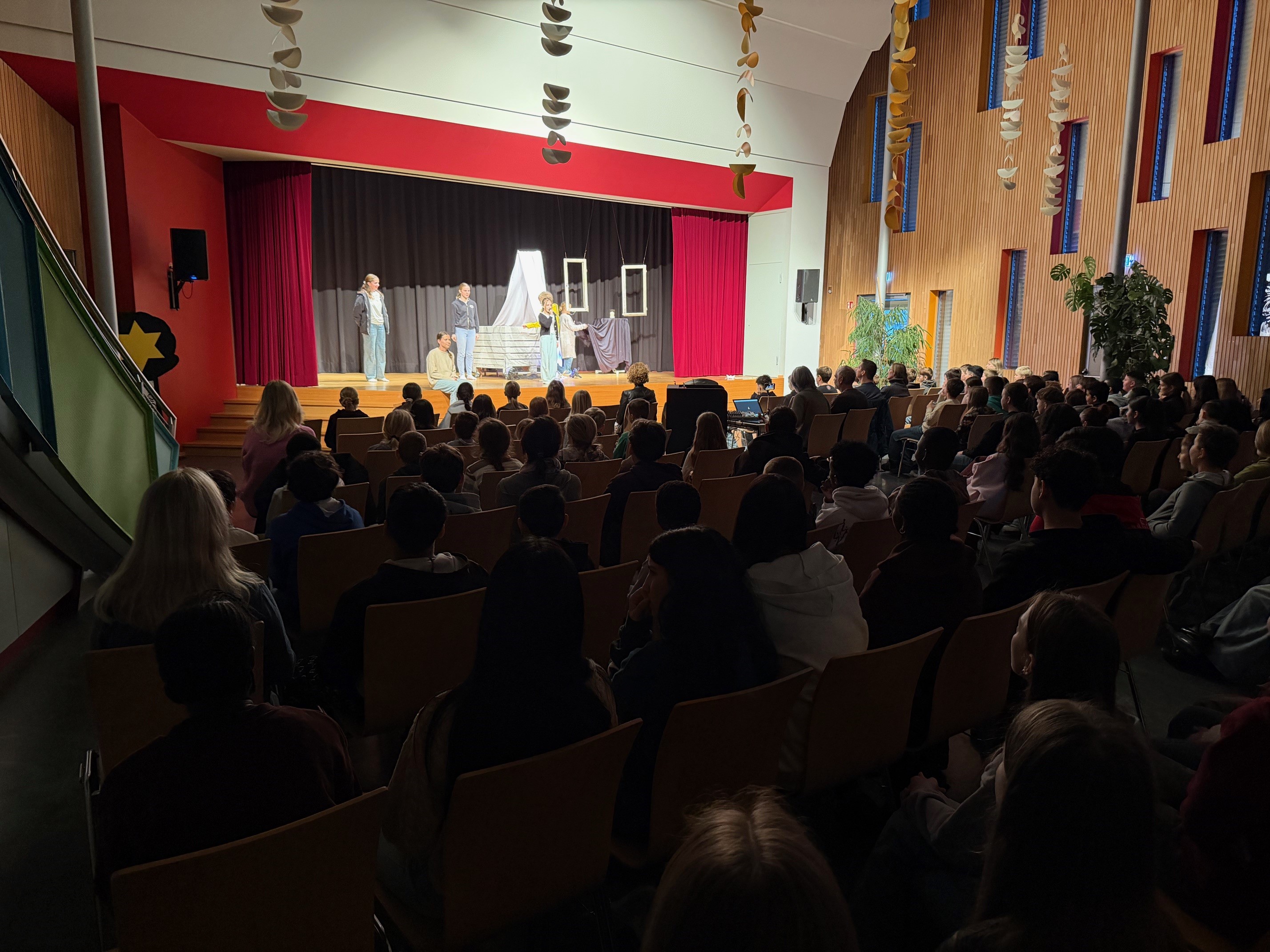 Das Publikum, Schülerinnen und Schüler der Klassen 5 – 7, waren mit Begeisterung bei der kurzweiligen Aufführung mit Musik- und Tanzeinlagen dabei. Der schöne Adventsvormittag wurde durch das wöchentliche Adventsliedersingen abgerundet, wobei am Schluss der ganze Saal voller Inbrunst „Feliz Navidad“ sang.