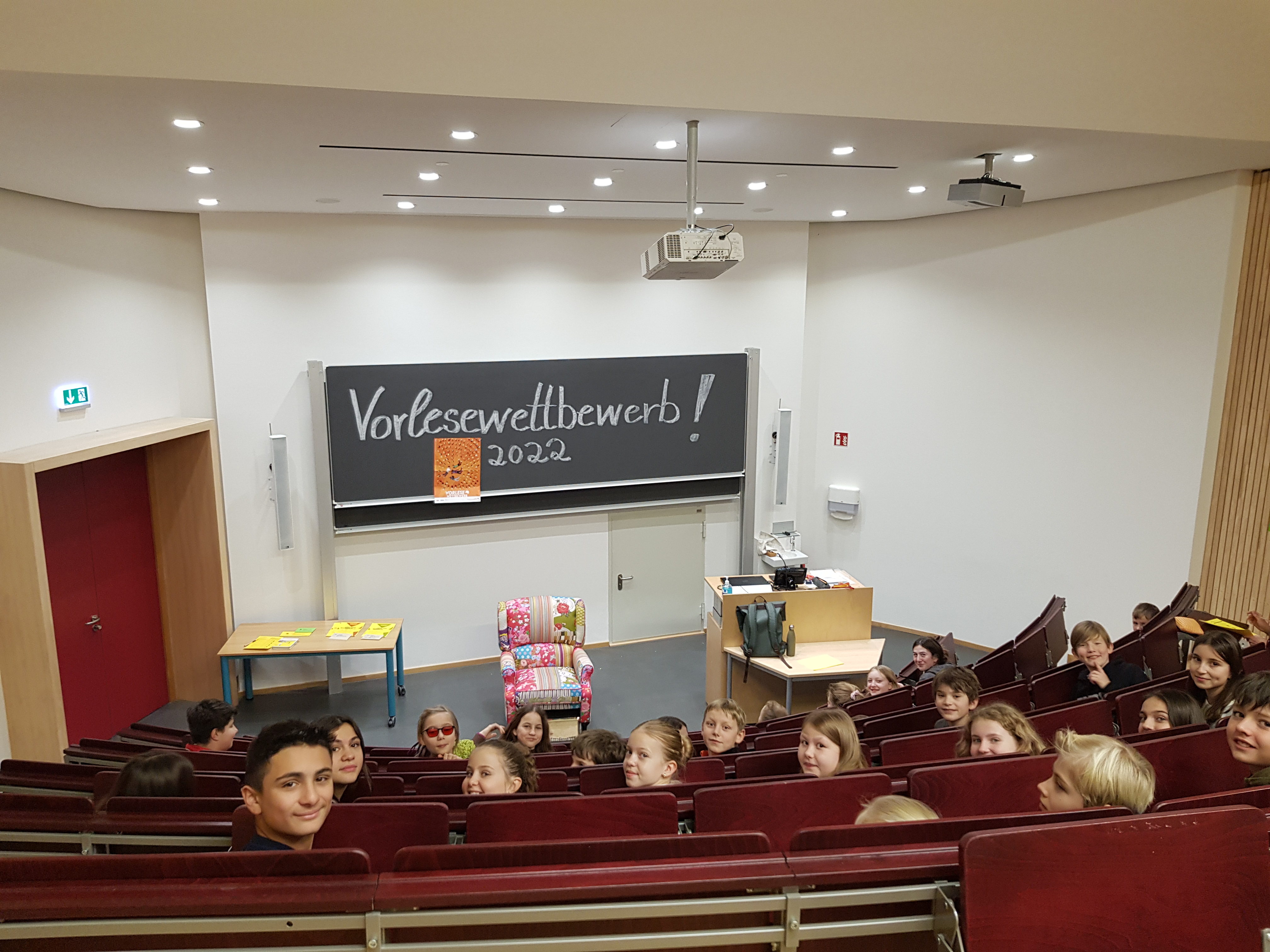 Am Freitag, 9.12.2022 fand nun endlich der Schulentscheid statt, wer Schulsieger des BZMs werden sollte. Die Klassensieger mussten ihren eignen, geübten Text und einen Fremdtext vorlesen. Alle Klassen trafen sich im Hörsaal. Die Aufregung war groß. Die beiden lasen fast Punktegelich vor. Wir jubelten und feuerten beide sehr laut an! Die Jury hatte eine sehr schwere Entscheidung zu treffen. Anhand von festgelegten Kriterien mussten die Jurymitglieder, die aus vier Siebtklässlern und zwei Lehrkräften bestand, letztendlich entscheiden. Fast punktgleich gewann Anton A.