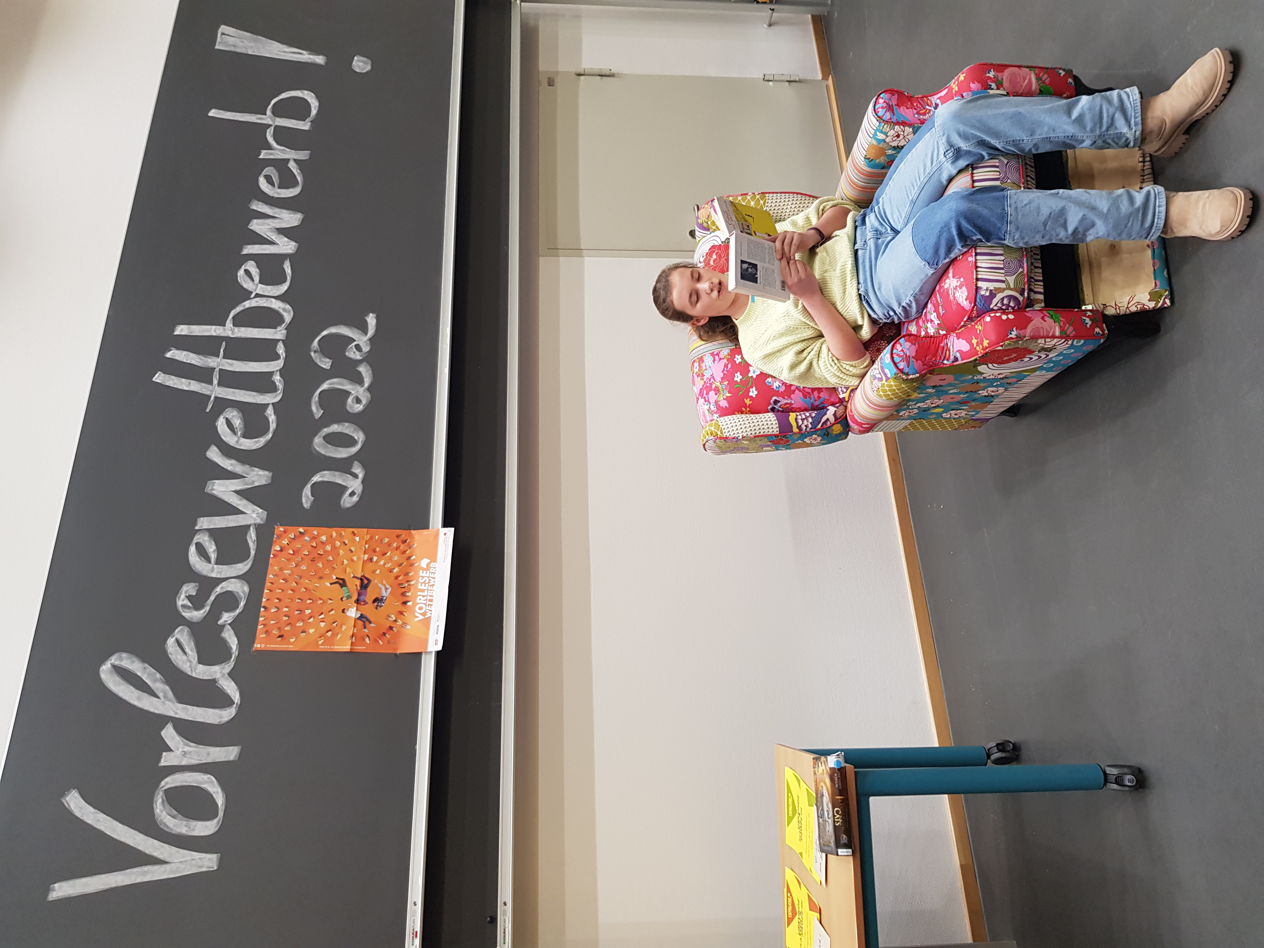 Seitdem wir vom Vorlesewettbewerb gleich zu Beginn des Schuljahres informiert wurden, lesen wir wie verrückt. Zumindest einige von uns, nämlich die, die wirklich richtig viel Spaß am Lesen haben und das auch gerne machen. Zunächst waren alle Sechstklässler bei uns am Bildungszentrum gefragt. Jeder machte sich auf die Suche nach einem guten Buch und überlegte sich daraus eine Lieblingsstelle zum Vorlesen. Dadurch haben wir klassenintern wirklich viele verschiedene Bücher kennengelernt.